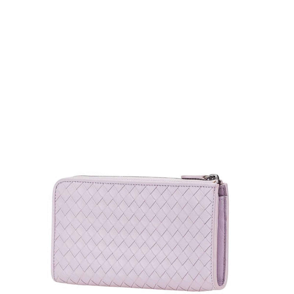 Bottega Veneta Intrecciato Long Wallet with L-shaped Zipper, Purple Leather, Women\'s
