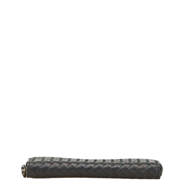 Bottega Veneta Intrecciato Long Wallet with Round Zipper, Black Leather, Women\'s