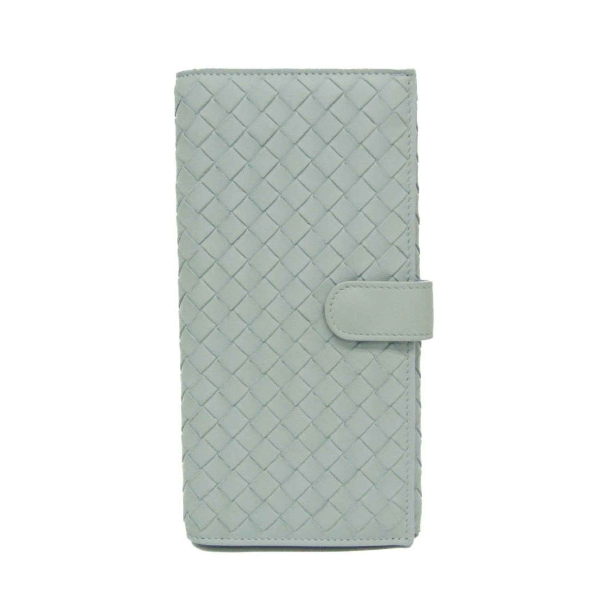 Bottega Veneta Intrecciato Men,Women Leather Long Wallet (bi-fold) Light Blue Gray