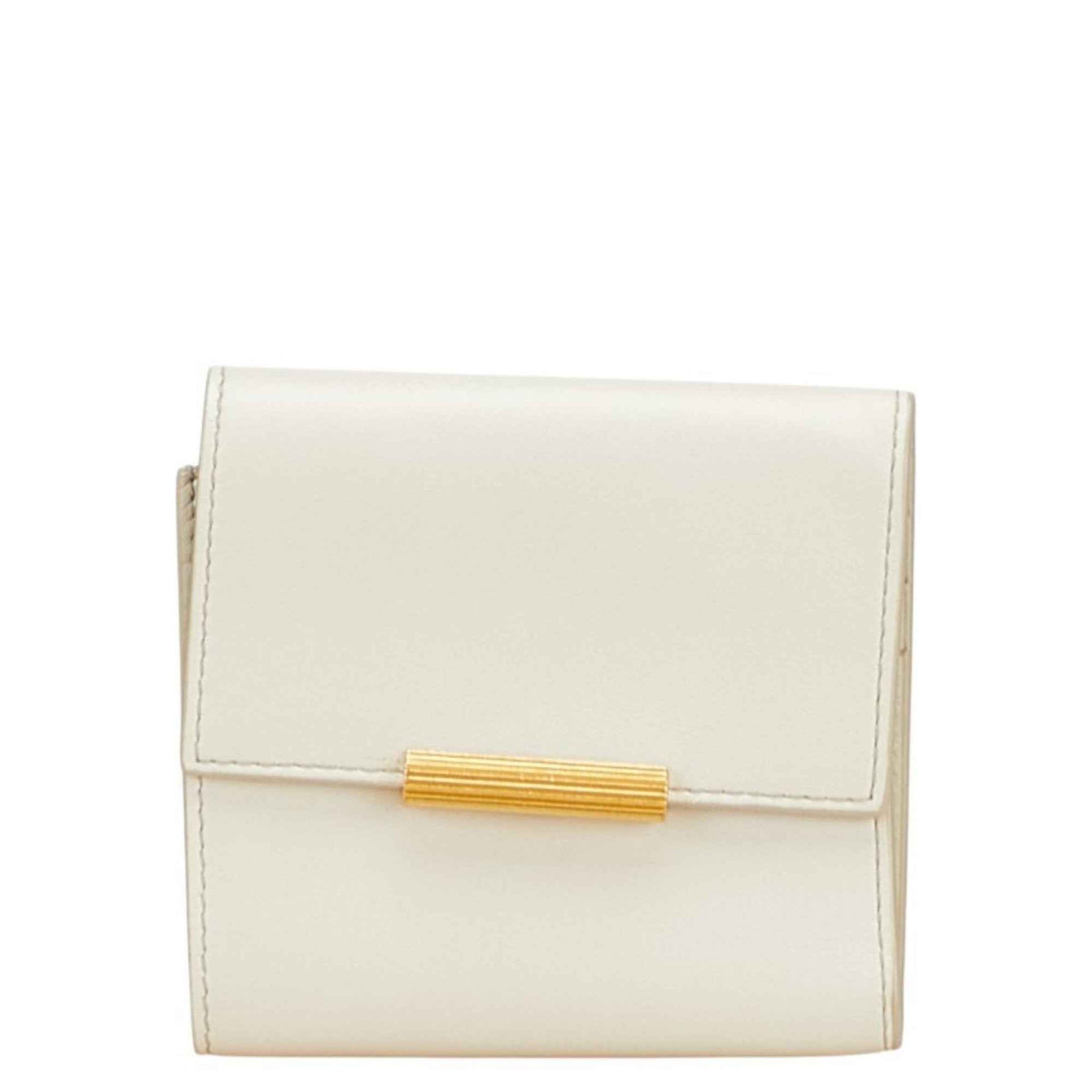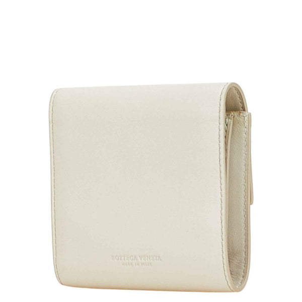 Bottega Veneta Logo Compact Wallet in White and Ivory Leather for Women