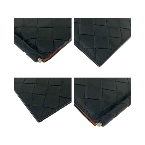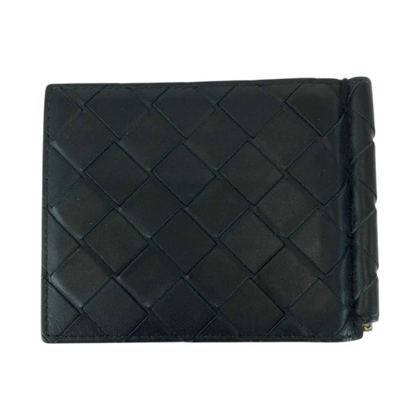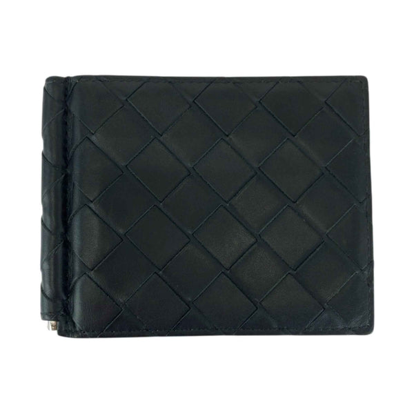 BOTTEGA VENETA Men\'s Intrecciato Black Leather Folding Wallet with Silver Hardware and Money Clip