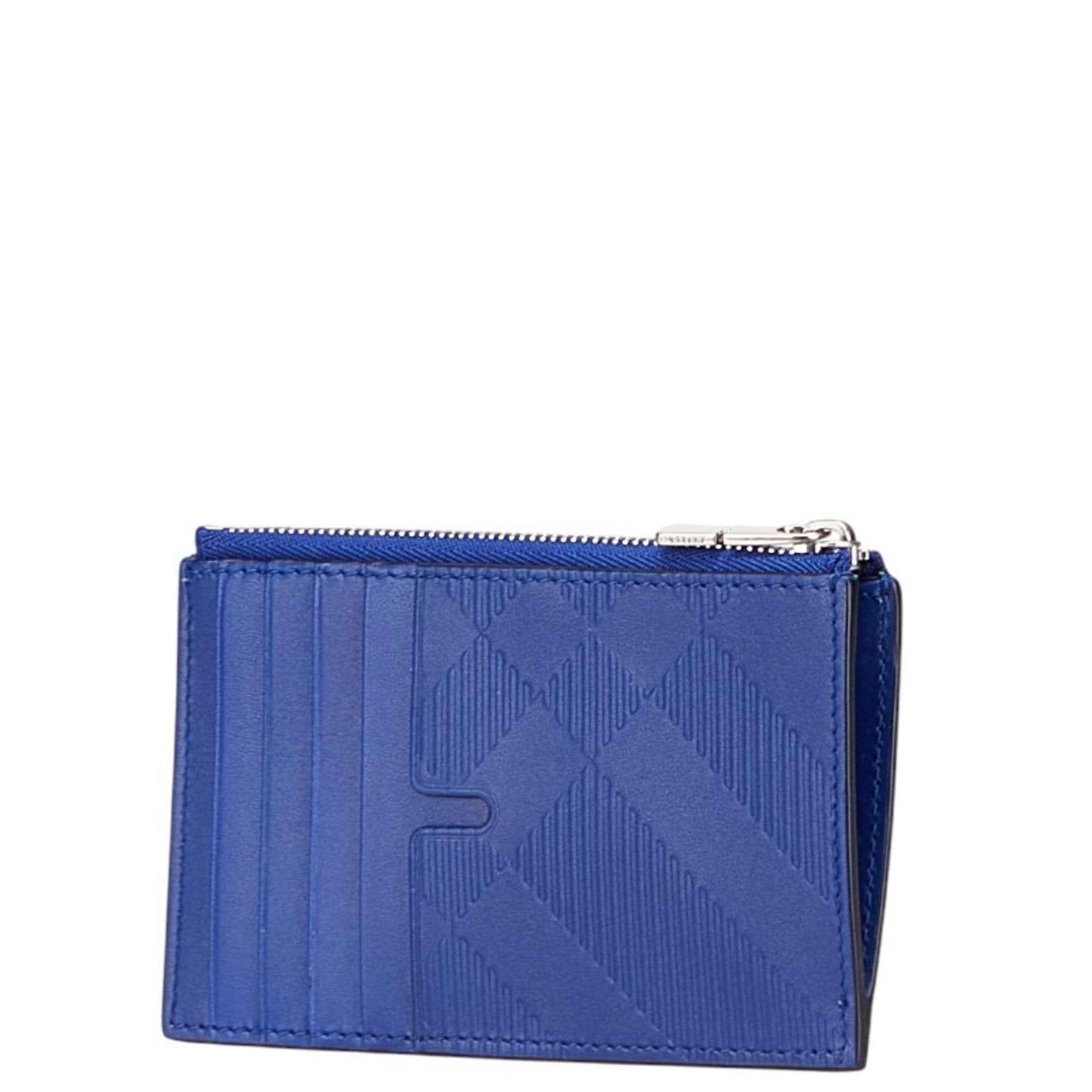 Burberry Nova Check Business Card Case, Wallet, Coin Purse, Blue Leather, Women\'s, BURBERRY