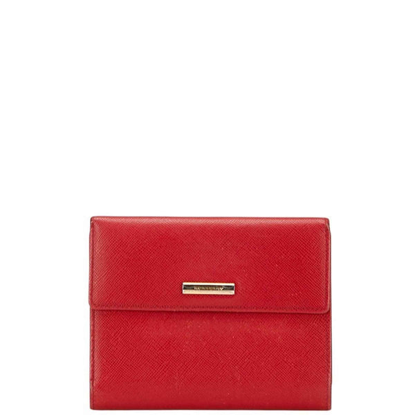 Burberry Nova Check Logo Plate Clasp Bifold Wallet Red Leather Women\'s BURBERRY