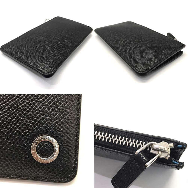 BVLGARI Coin Purse, Key Case, Black, Men\'s, Black Leather,
