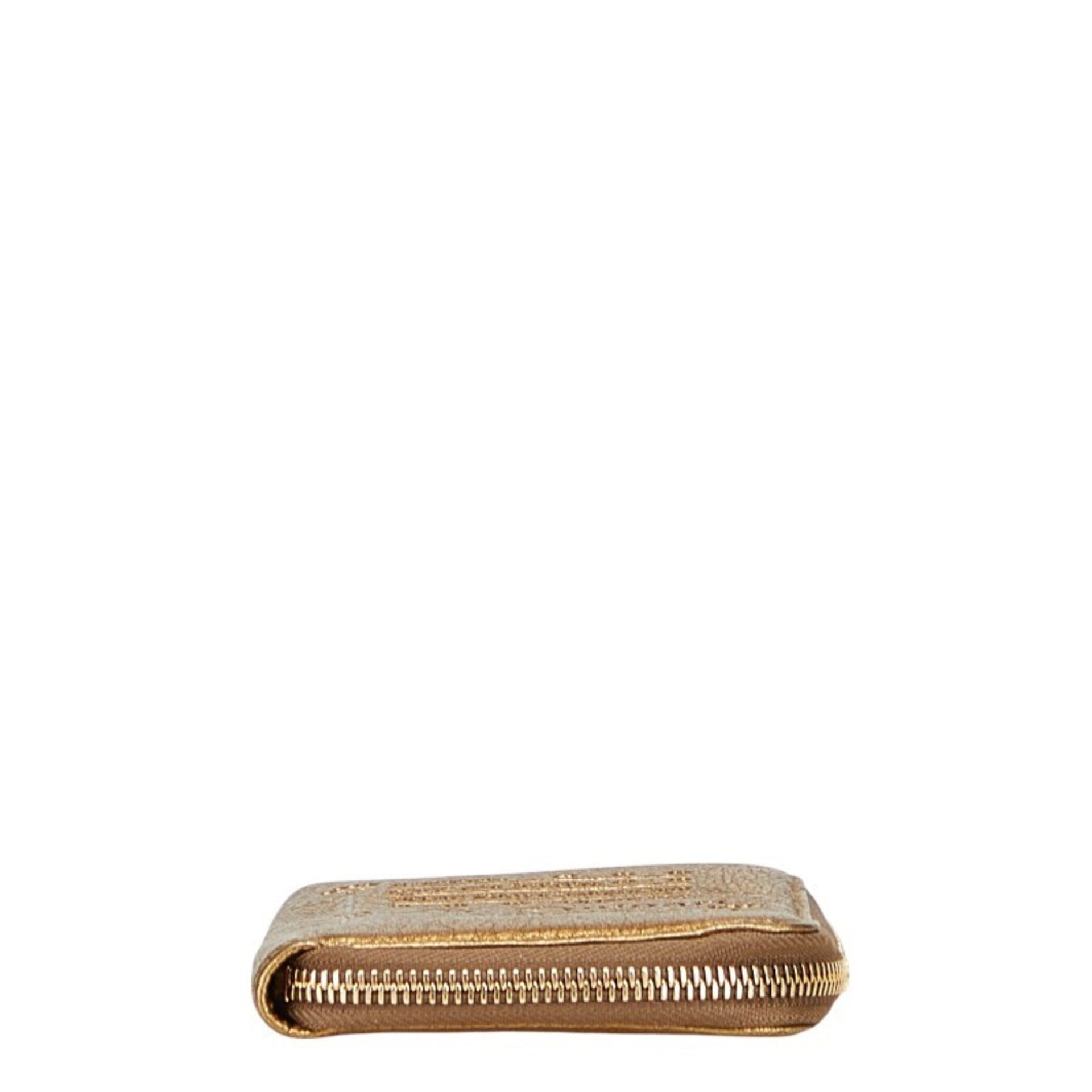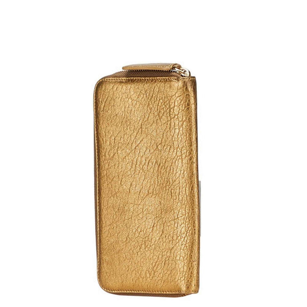 BVLGARI Collezione Long Wallet with Round Zipper, Gold Leather, Women\'s
