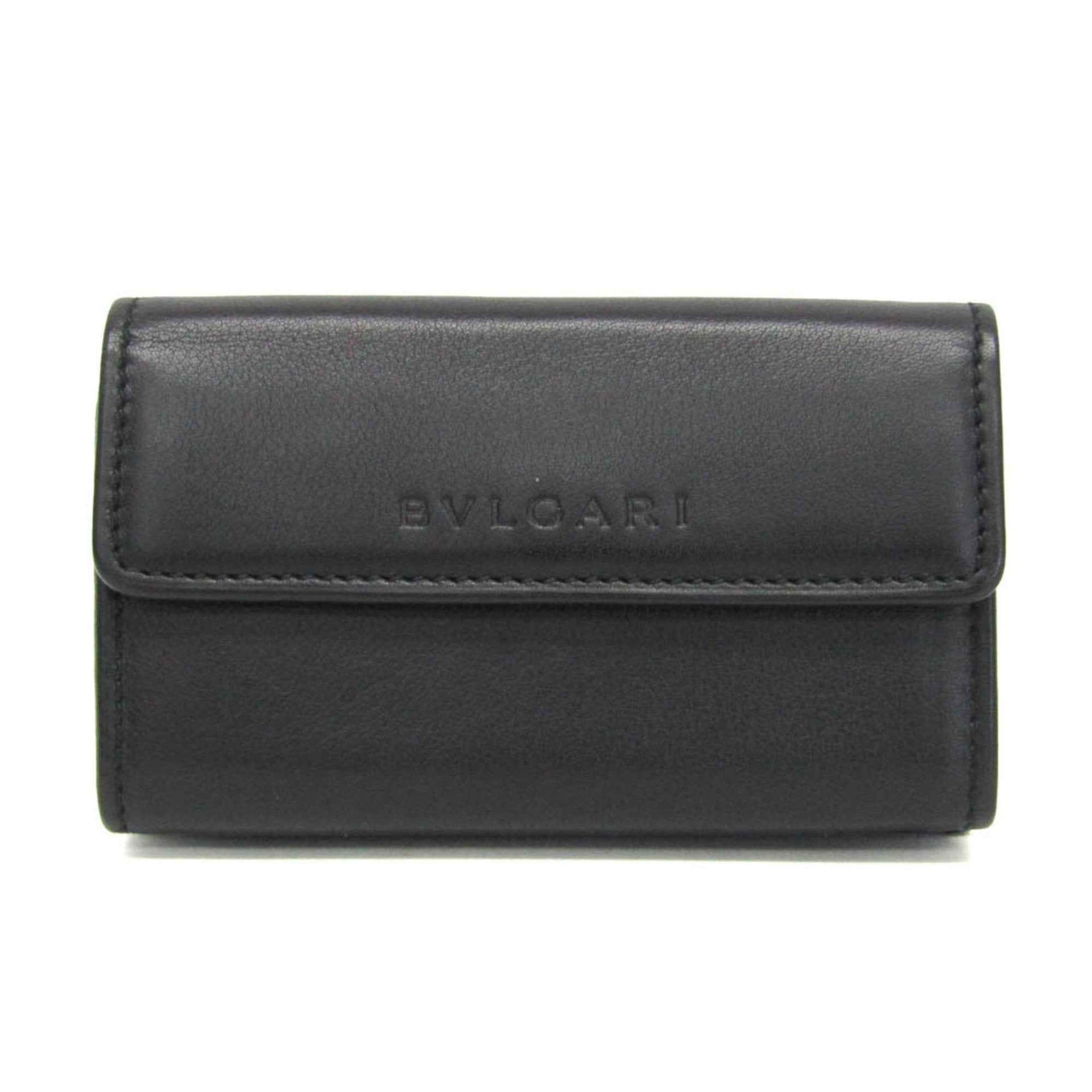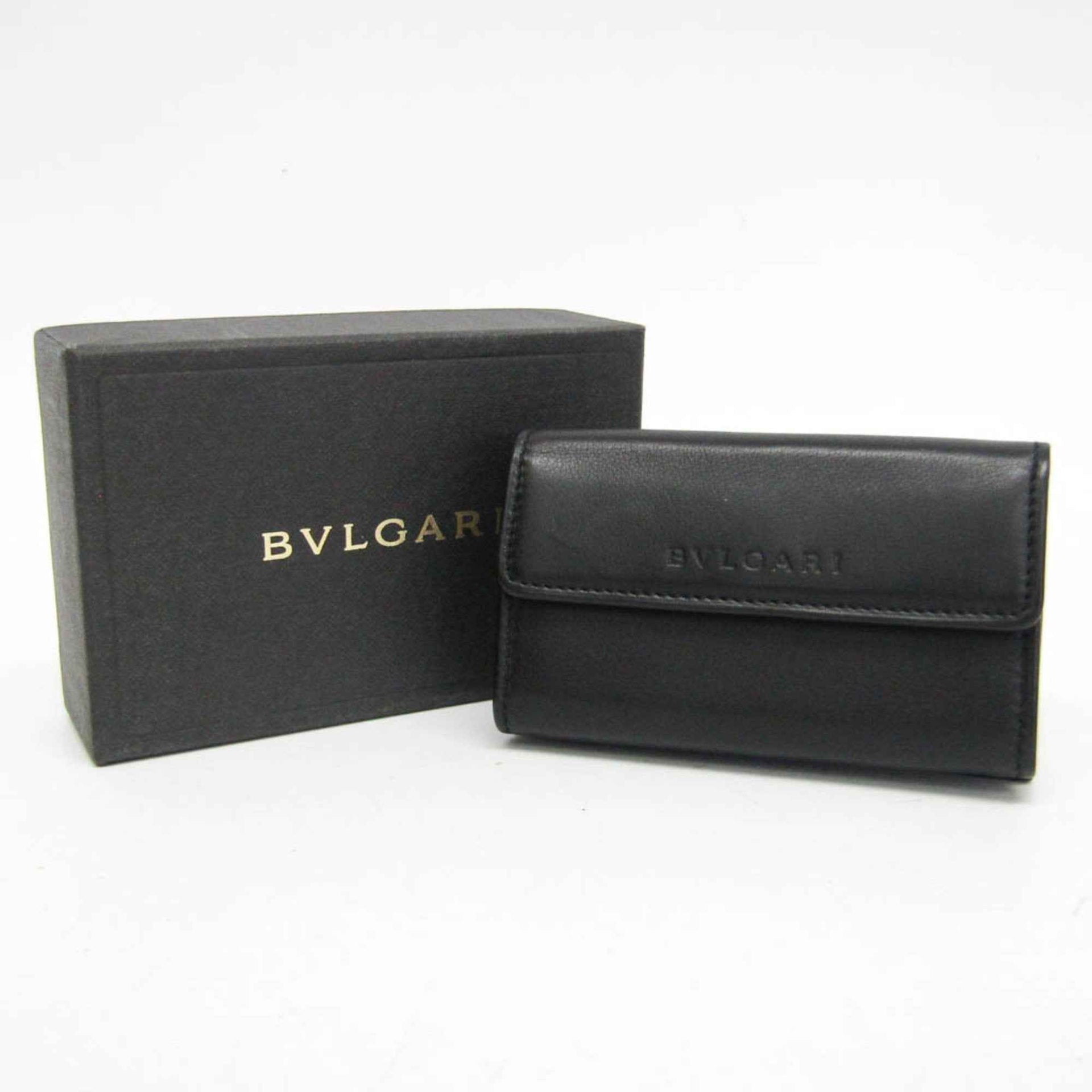 Bvlgari Four-fold Mini Wallet Men,Women Leather Coin Purse/coin Case Black