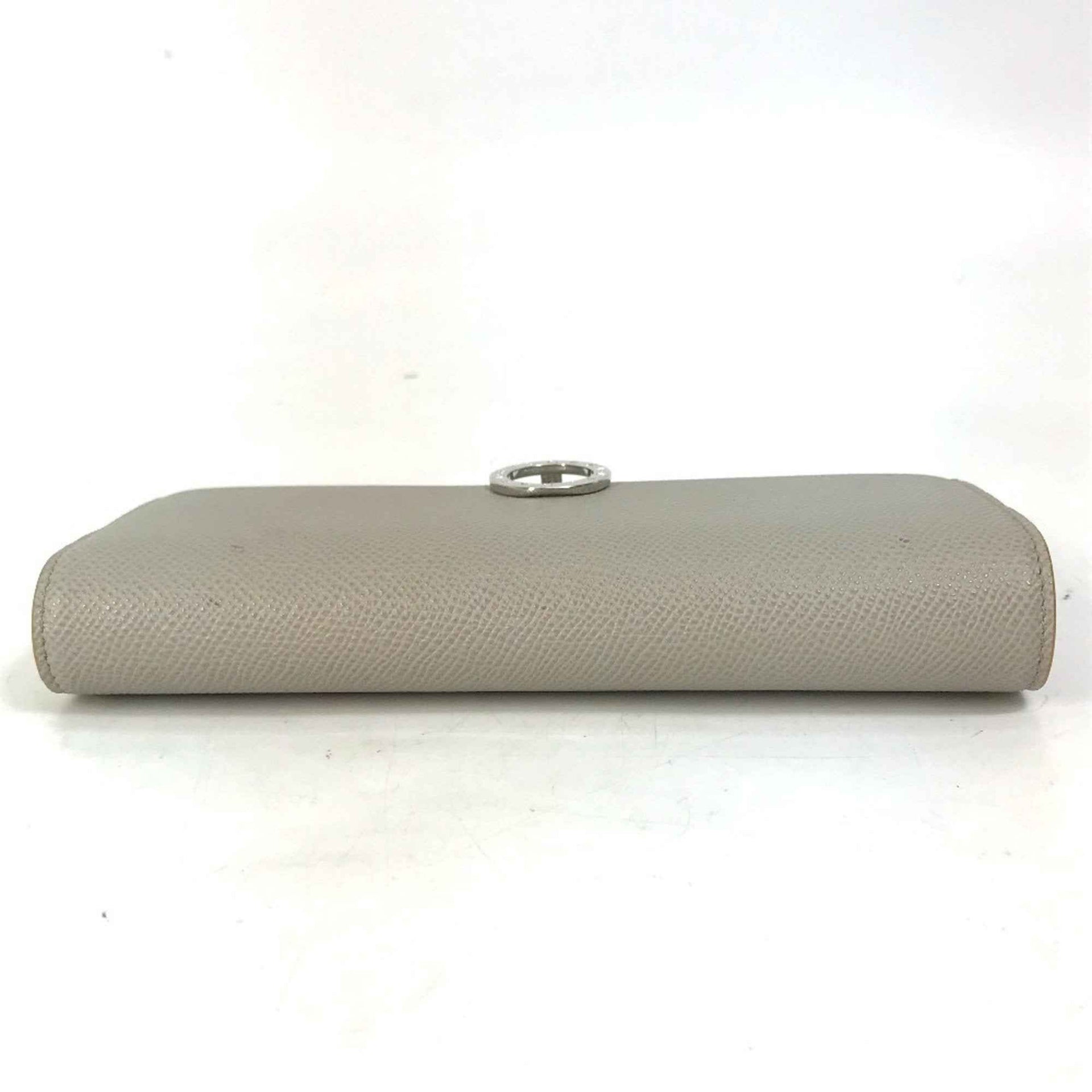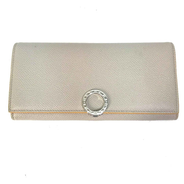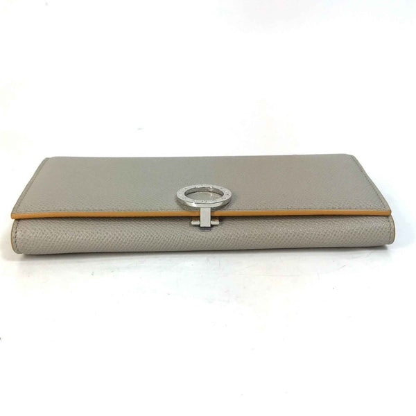 BVLGARI Logo Clip Bifold Wallet Leather Women\'s Gray x Yellow