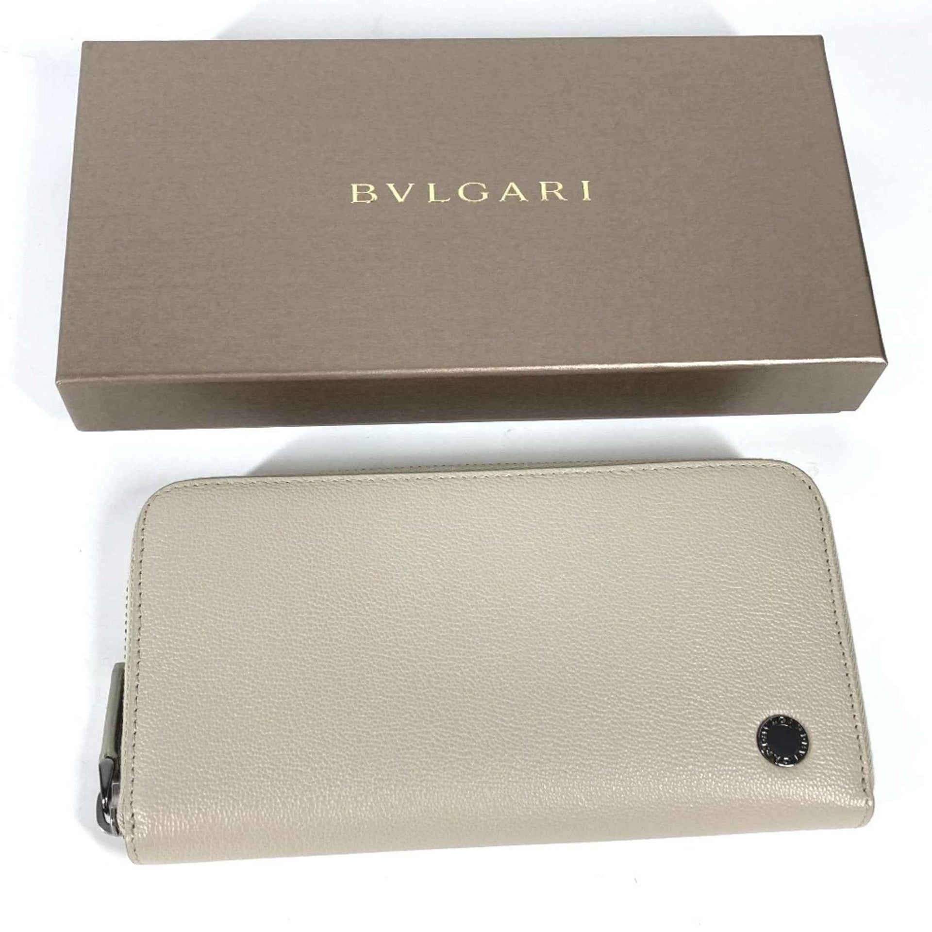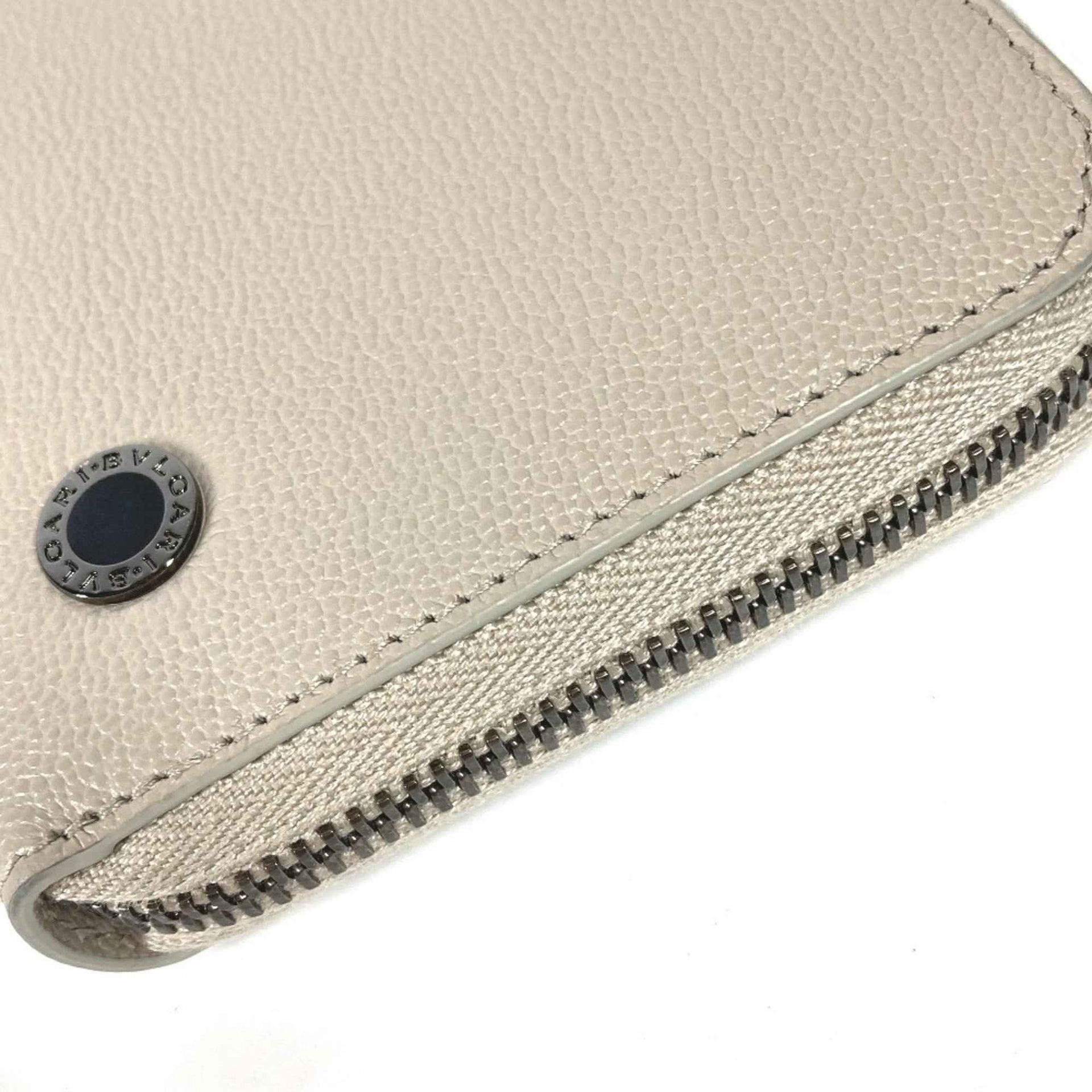 BVLGARI logo round zipper long wallet leather women\'s ivory
