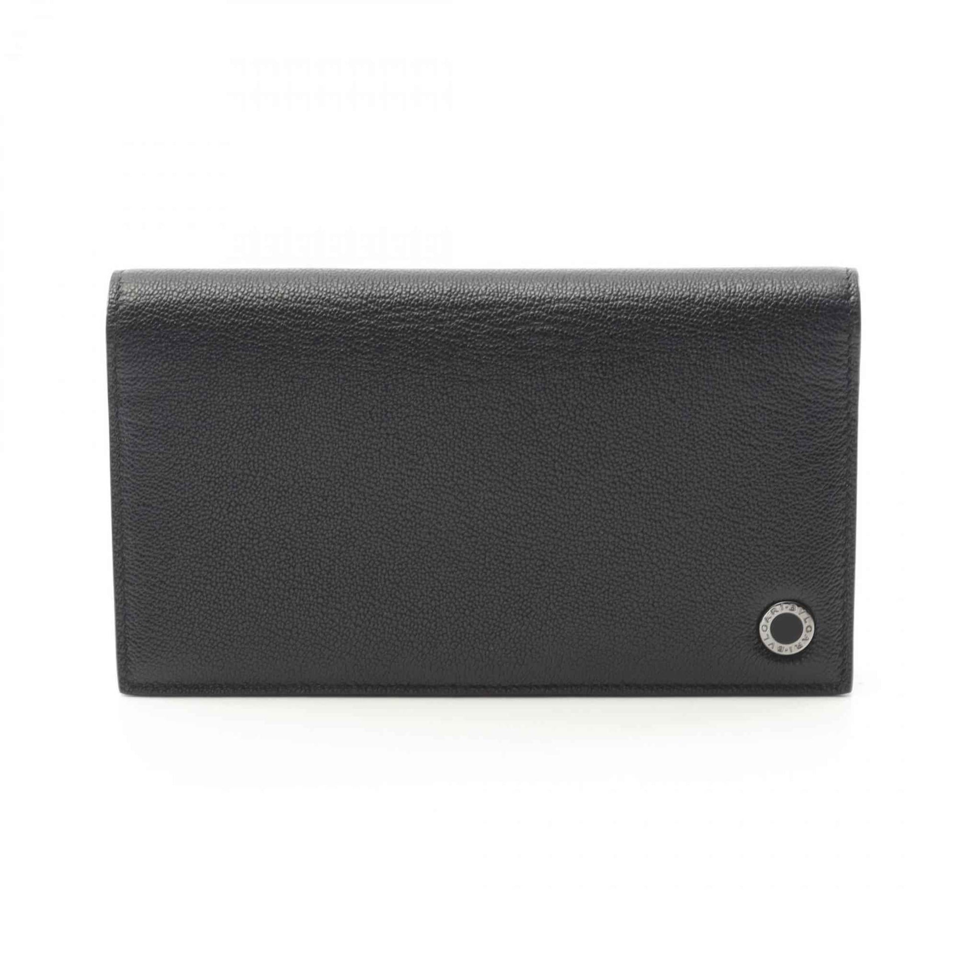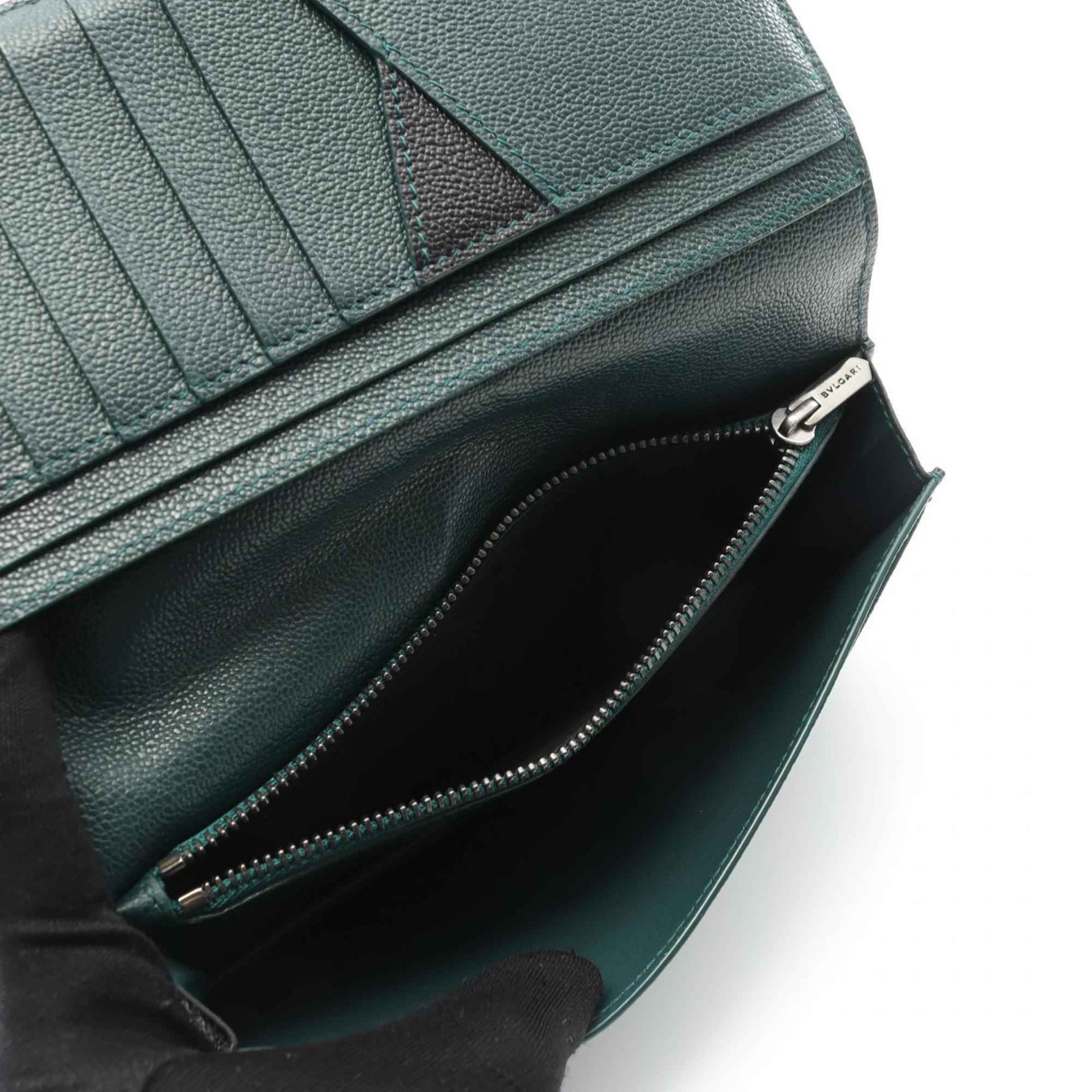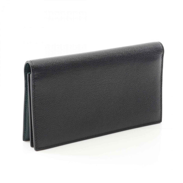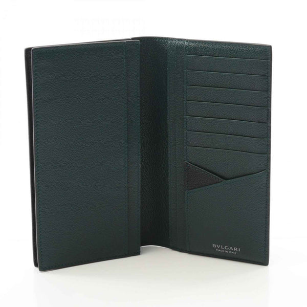 BVLGARI Men\'s Leather Bi-fold Long Wallet in Black and Green (291156)