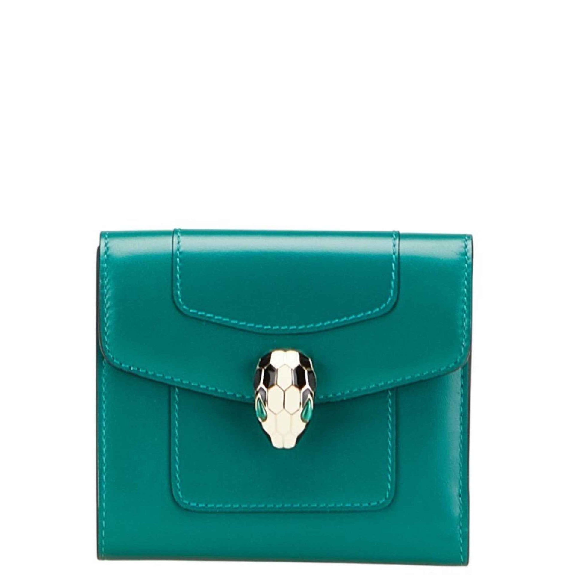 Bvlgari Serpenti Forever Snake Two-Tone Tri-fold Wallet in Green and Purple Leather for Women