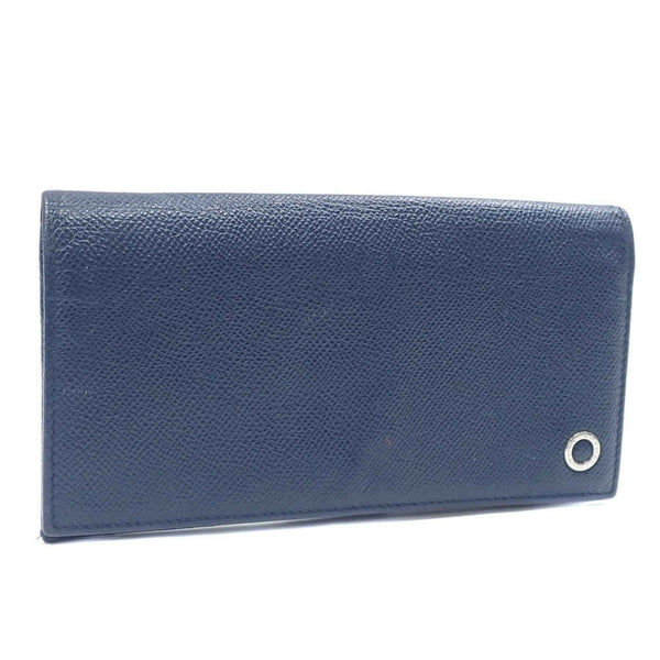 Bvlgari two-piece long wallet for men, navy blue leather.