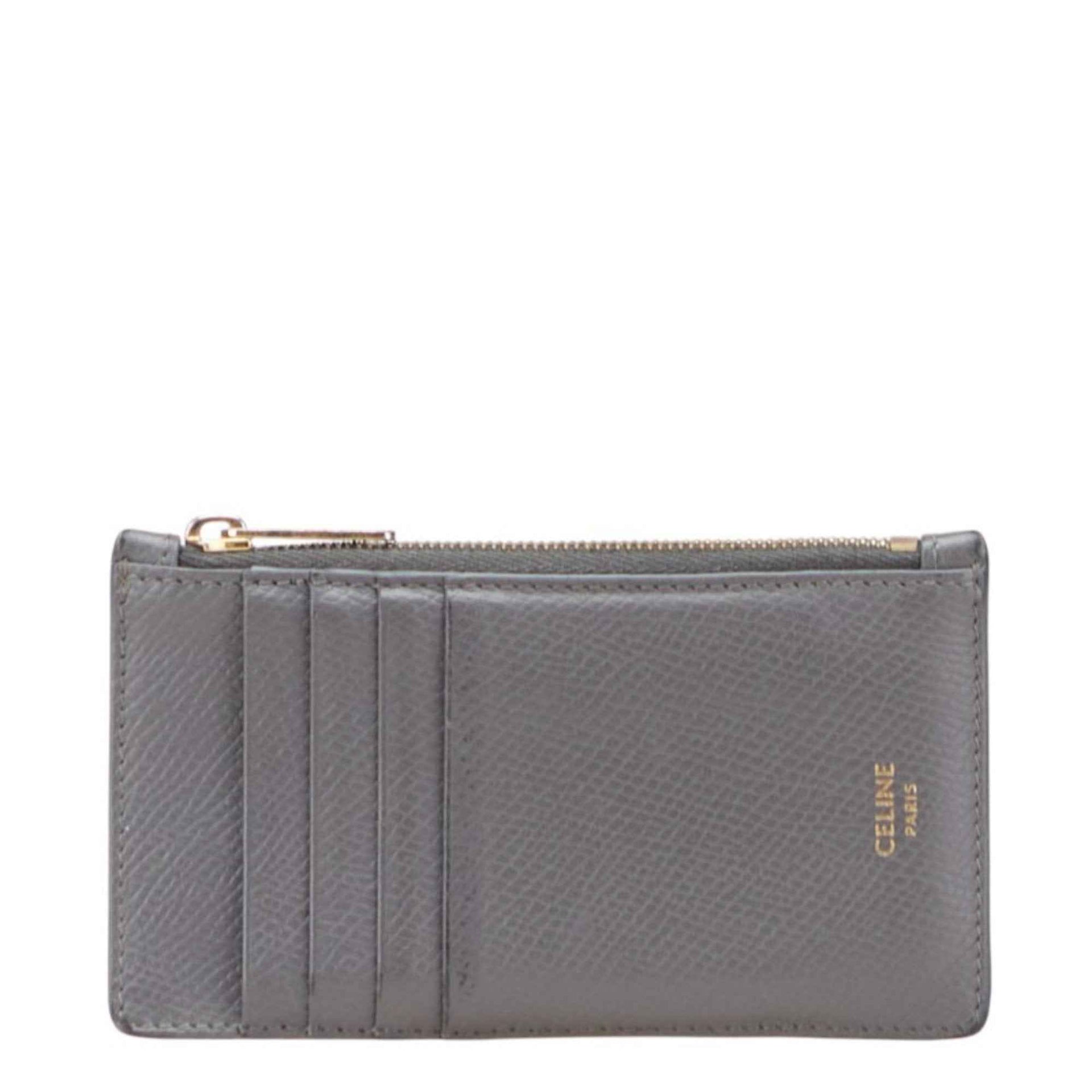 Celine Fragment Case, Gray Leather, Women\'s, Wallet/Coin Case