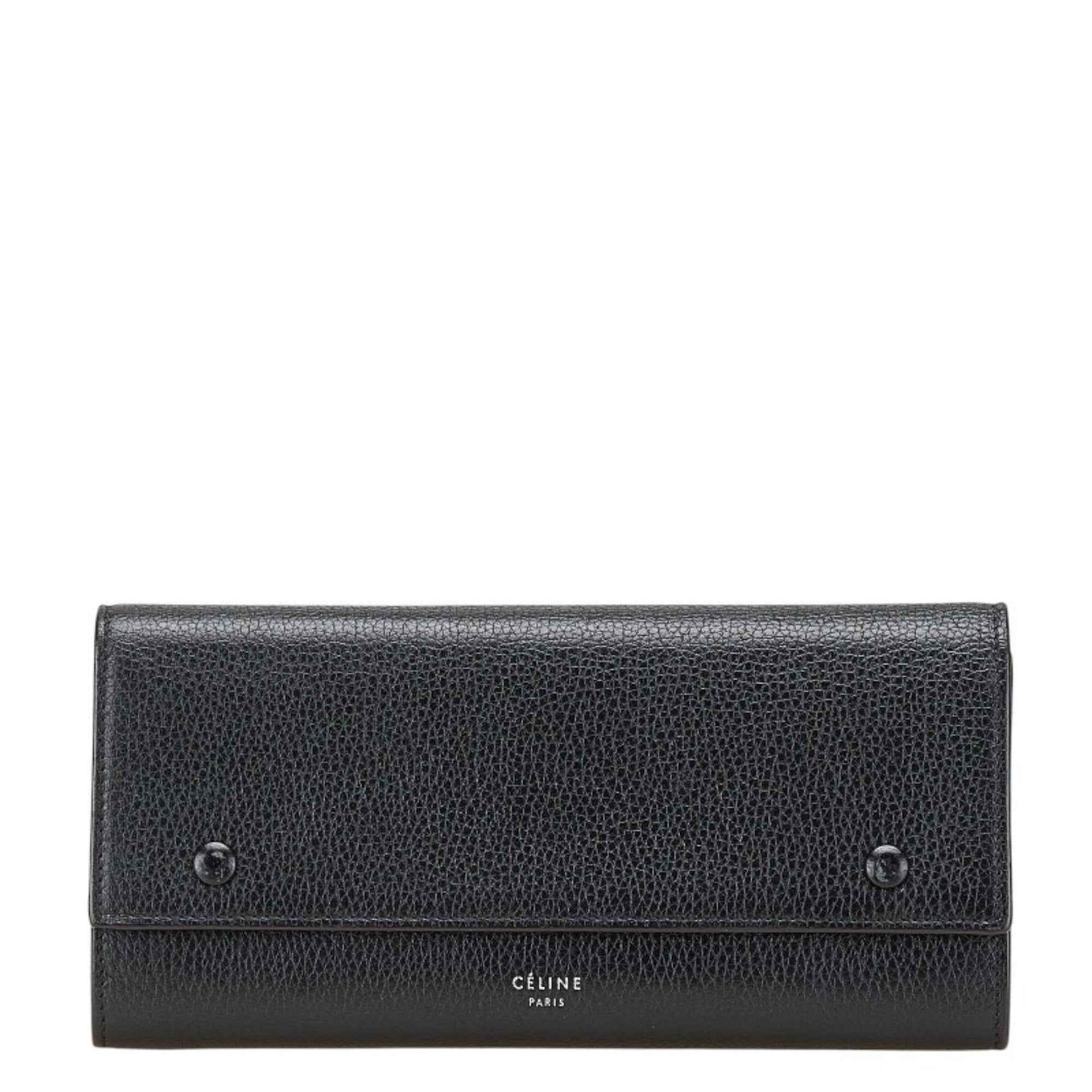 Celine Large Flap Multi-Cushion Long Wallet in Black Leather for Women