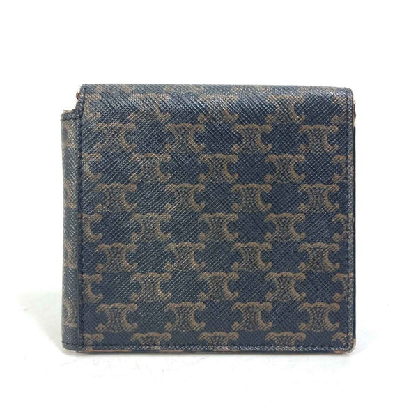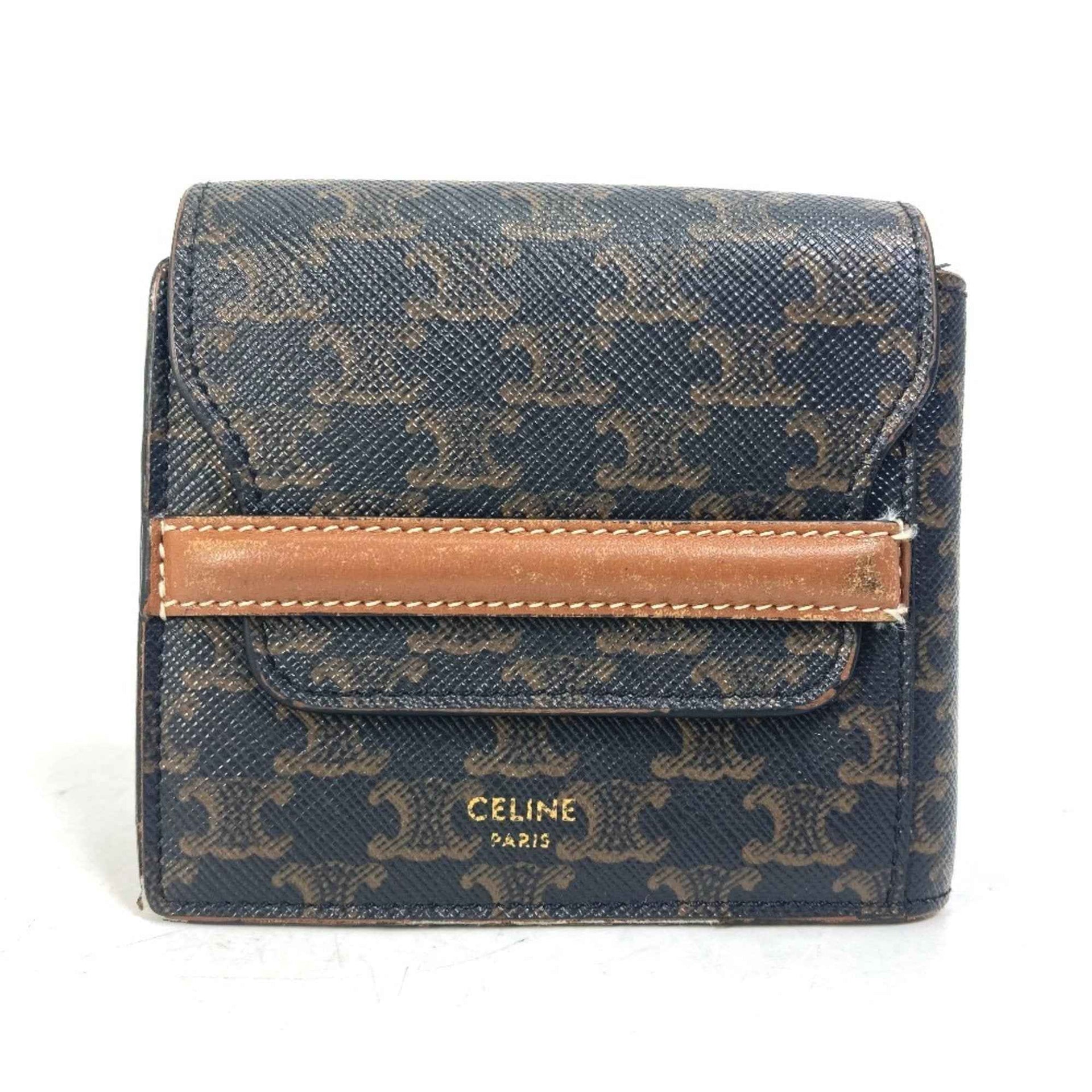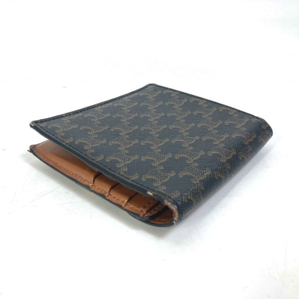 CELINE Triomphe Card Case with Billfold and Flap, Men\'s Brown Leather Bi-fold Wallet