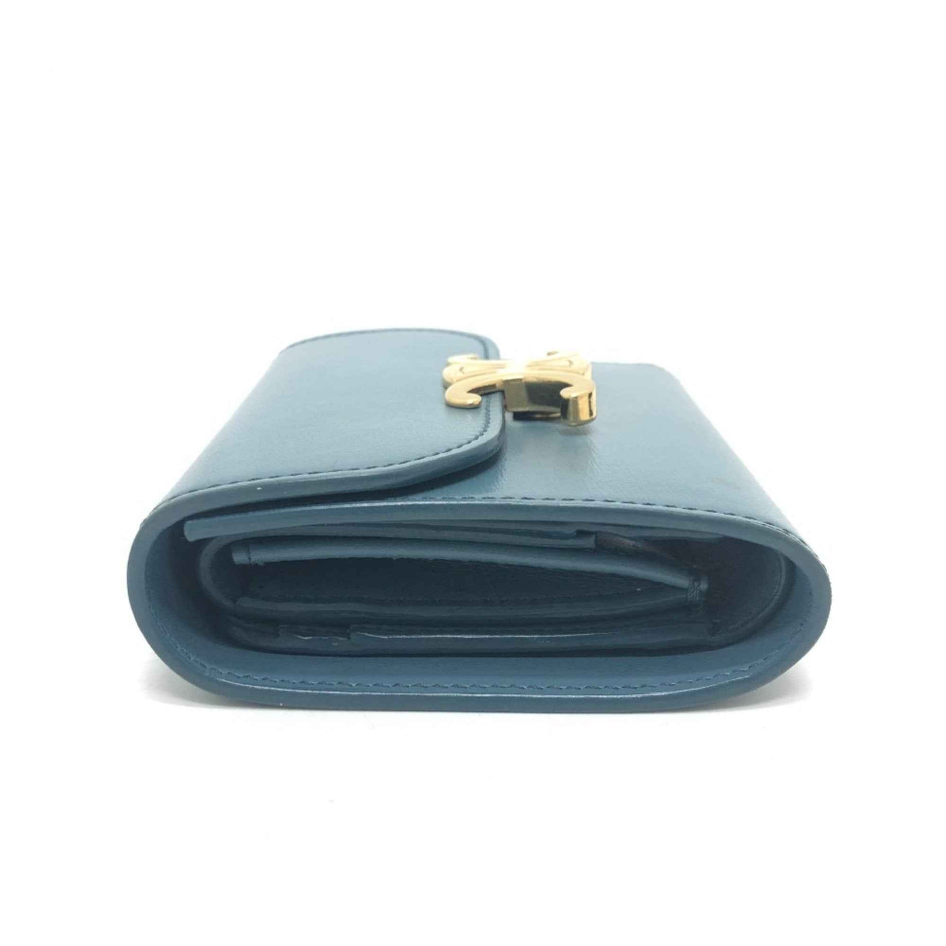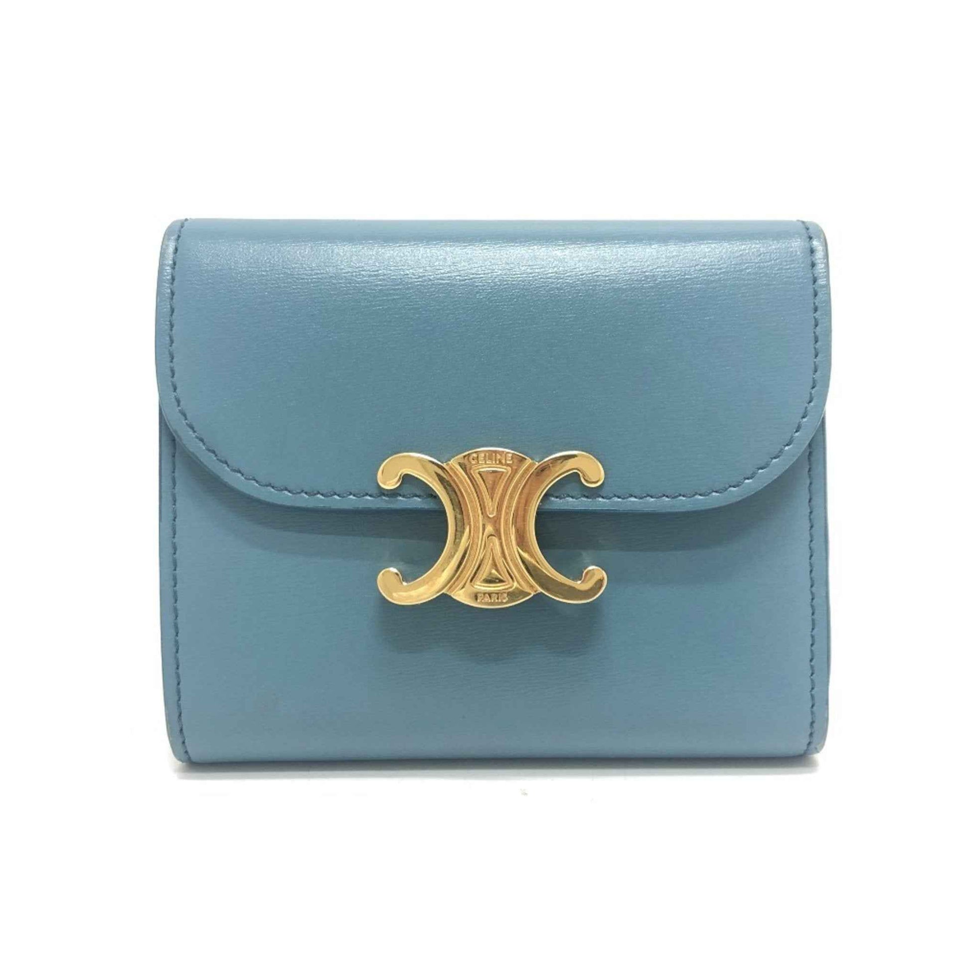 CELINE Triomphe Compact Wallet, Tri-fold Leather, Women\'s, Blue