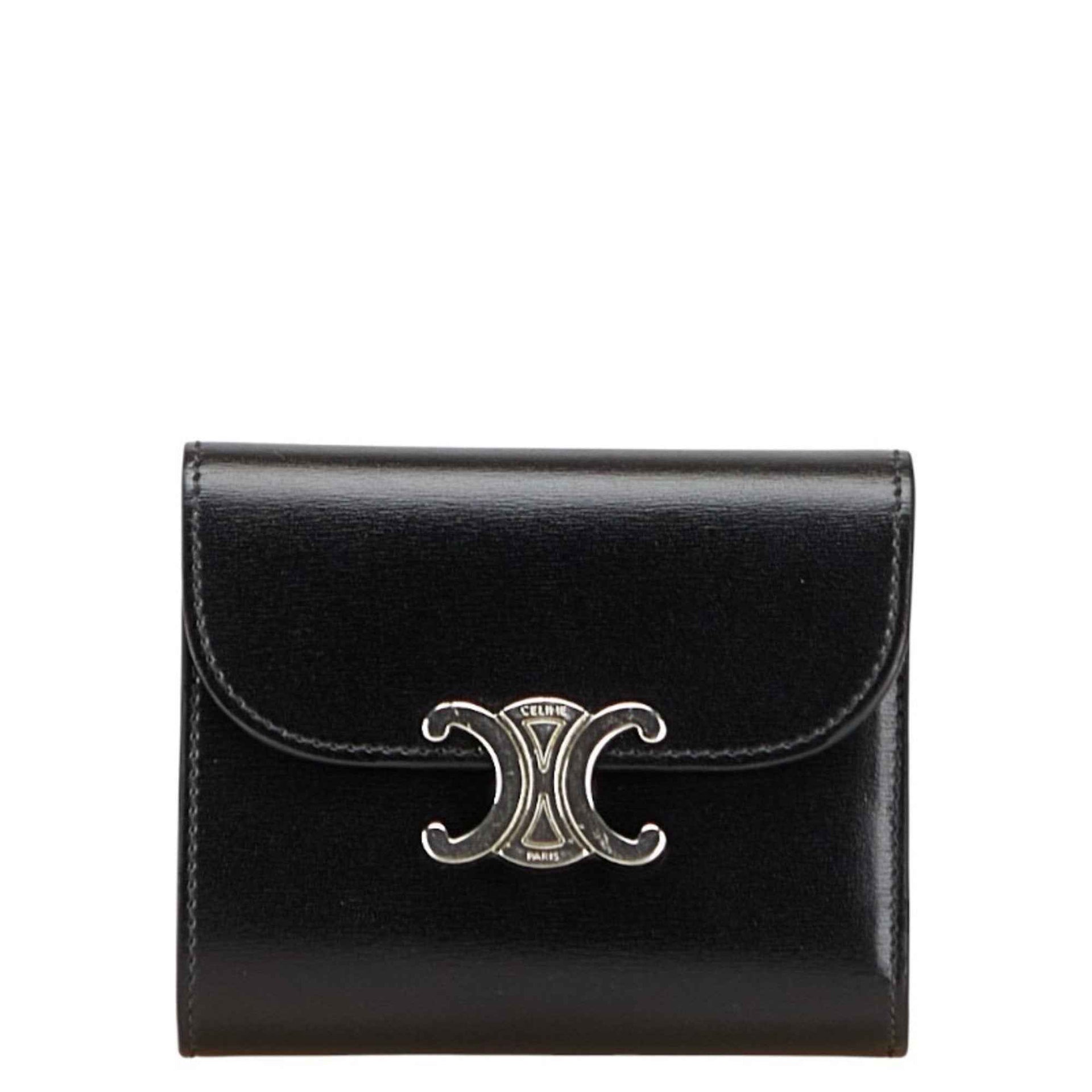 Celine Triomphe Small Flap Wallet, Tri-fold Black Leather, Women\'s, CELINE