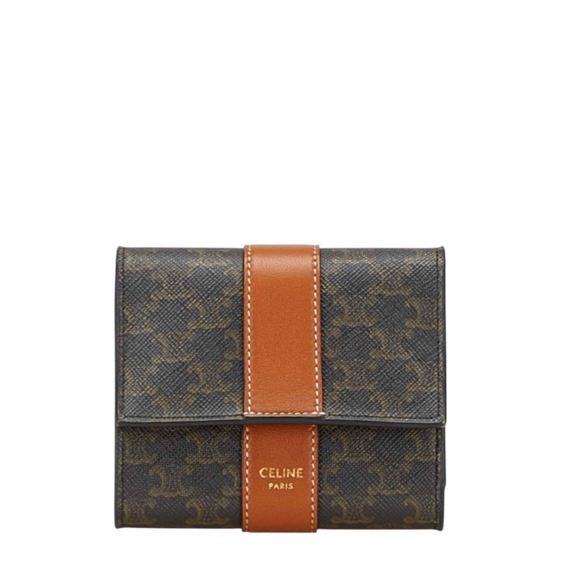 Celine Triomphe Tri-fold Wallet in Black and Brown Leather for Women