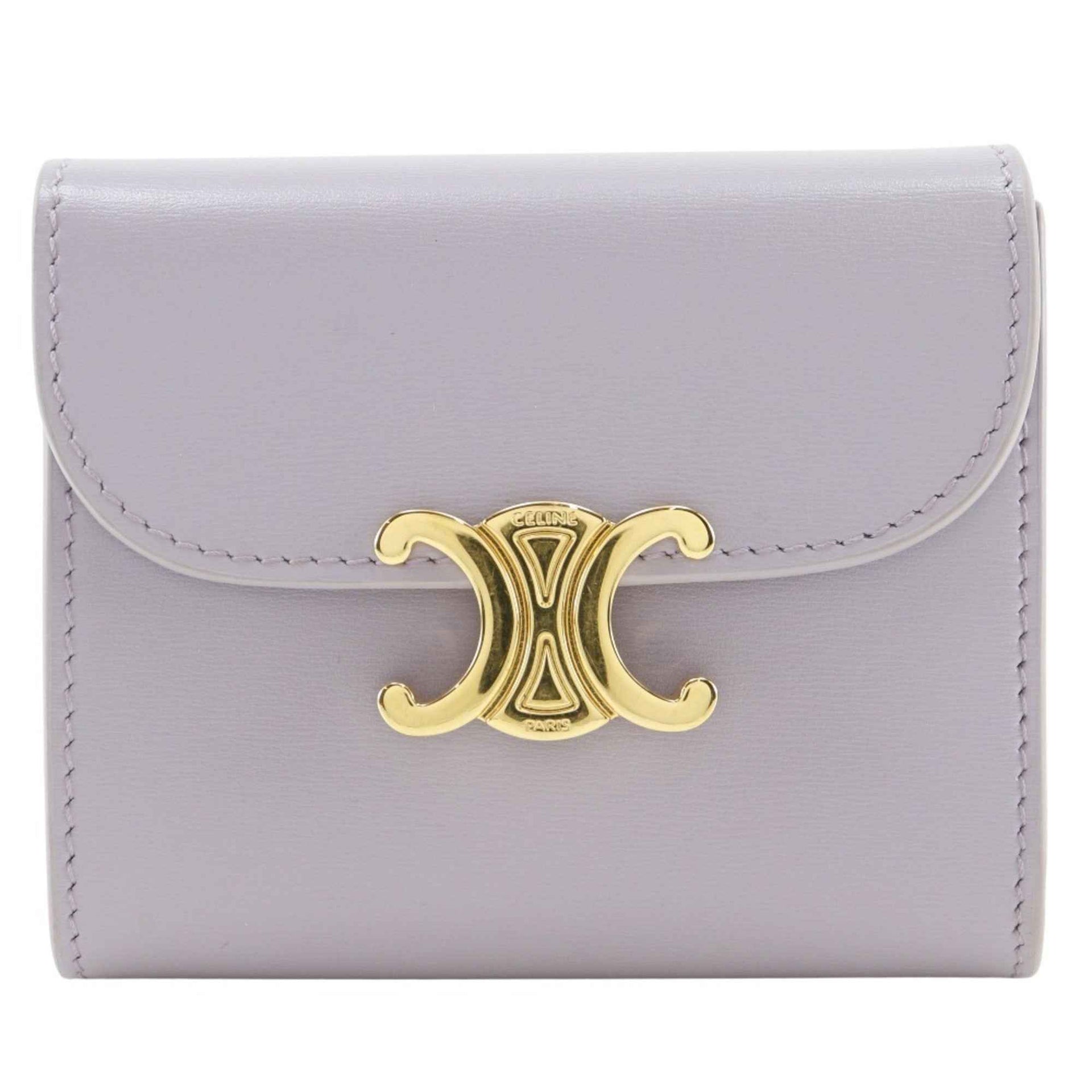 Celine Triomphe Tri-fold Wallet, Small Flap Compact Leather, Purple, Snap Button, Triomphe, Women\'s