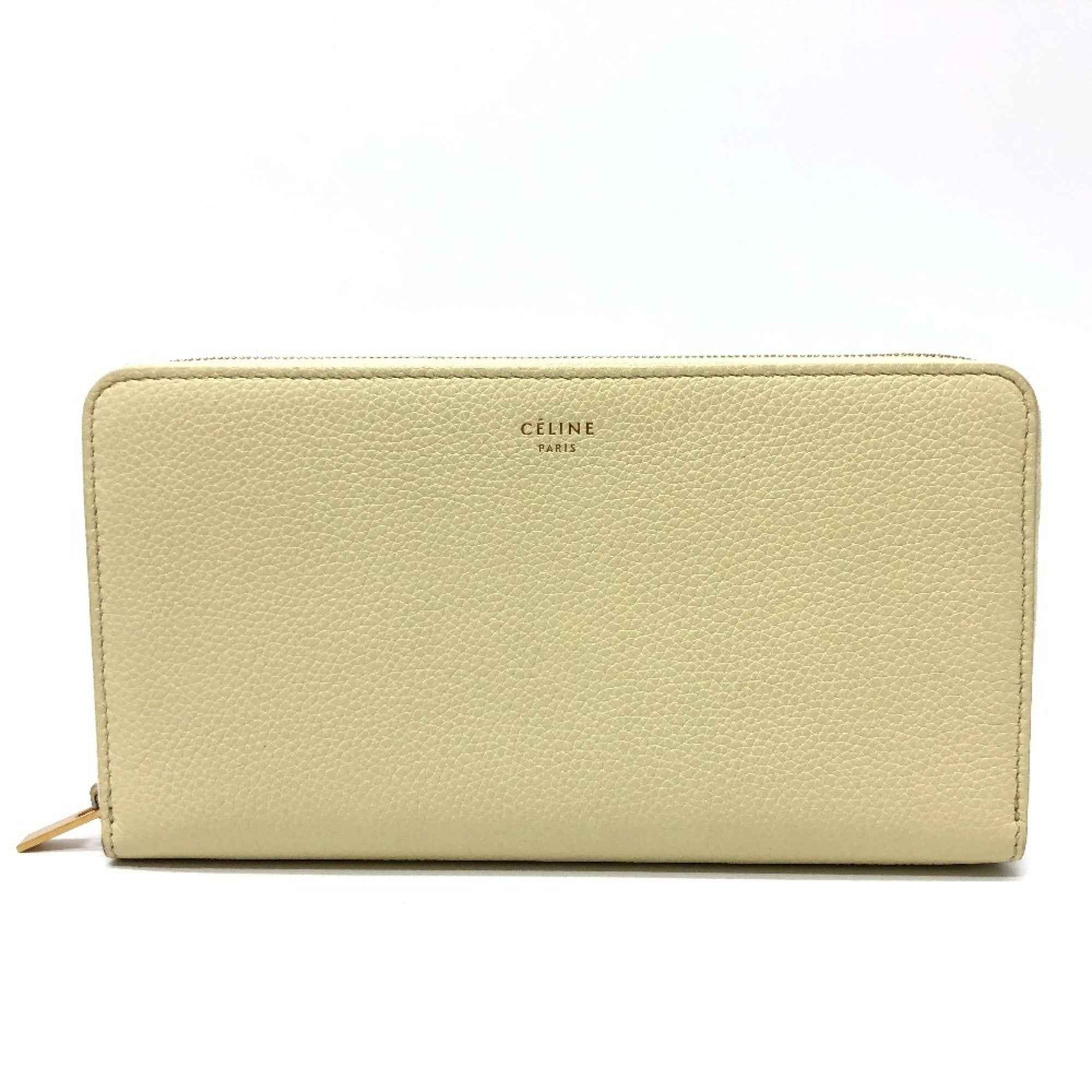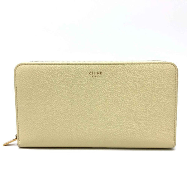 CELINE Women\'s Leather Round Zip Long Wallet in Beige