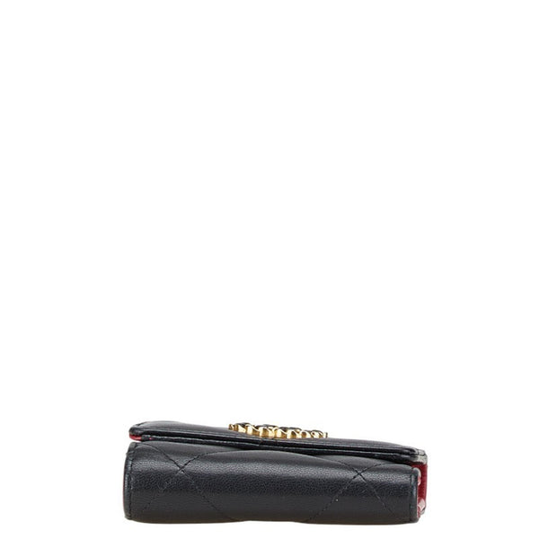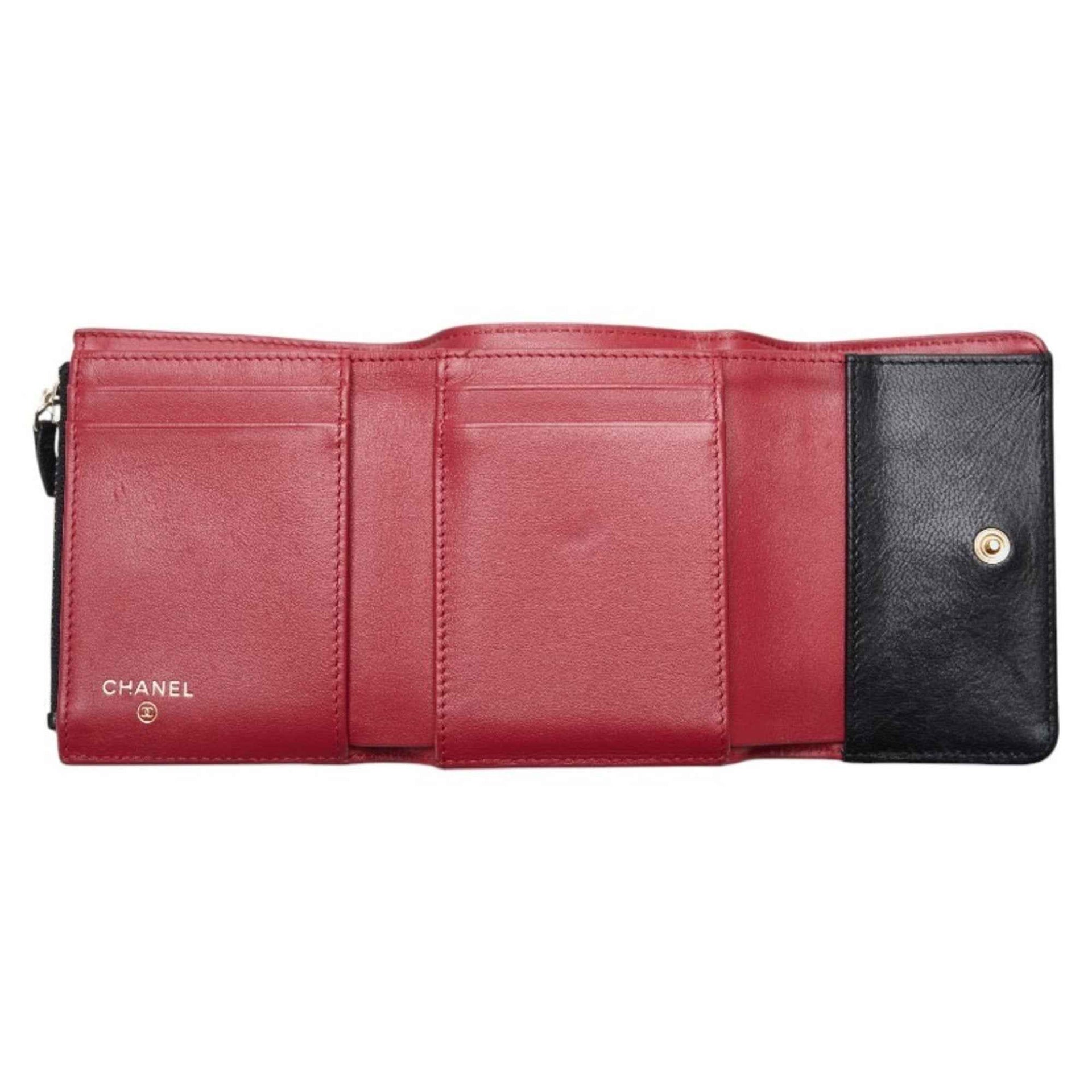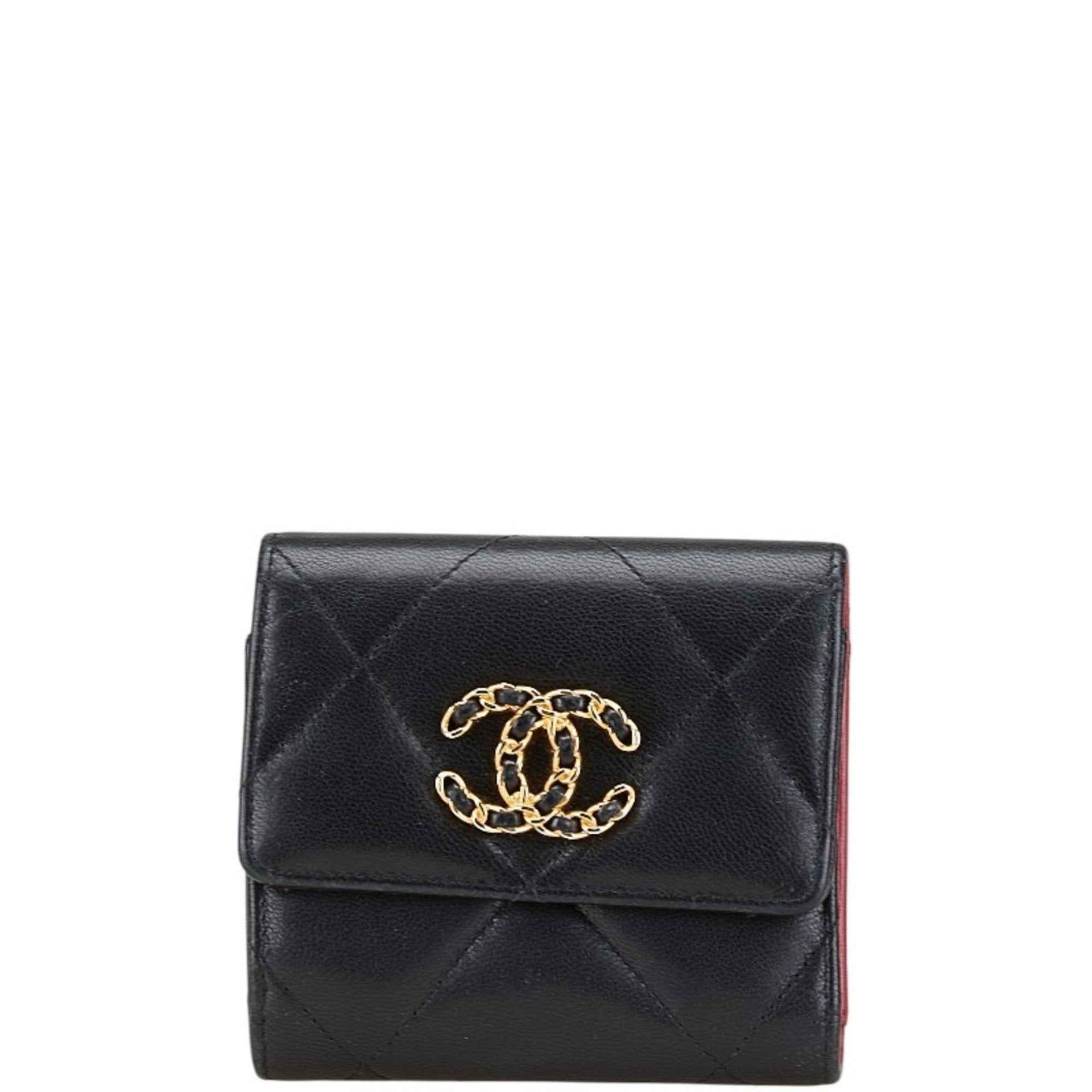 Chanel 19 Coco Mark Tri-fold Wallet Small Flap AP1064 Black Pink Lambskin Women\'s CHANEL
