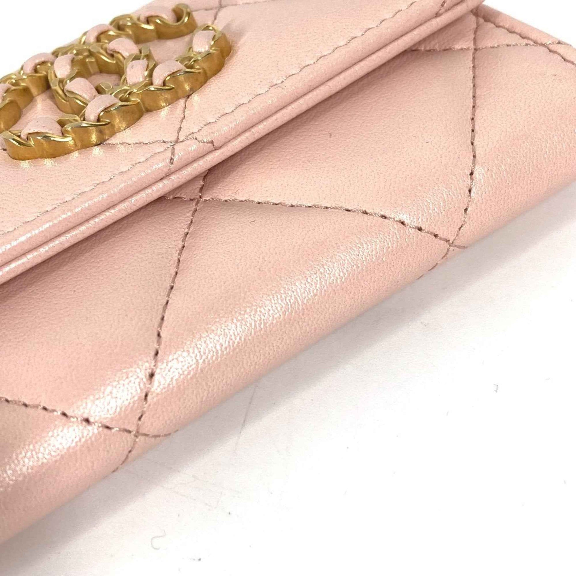 CHANEL 19 Line Chain CC Card Case Matelasse Coco Mark Wallet Coin Lambskin Women\'s Pink