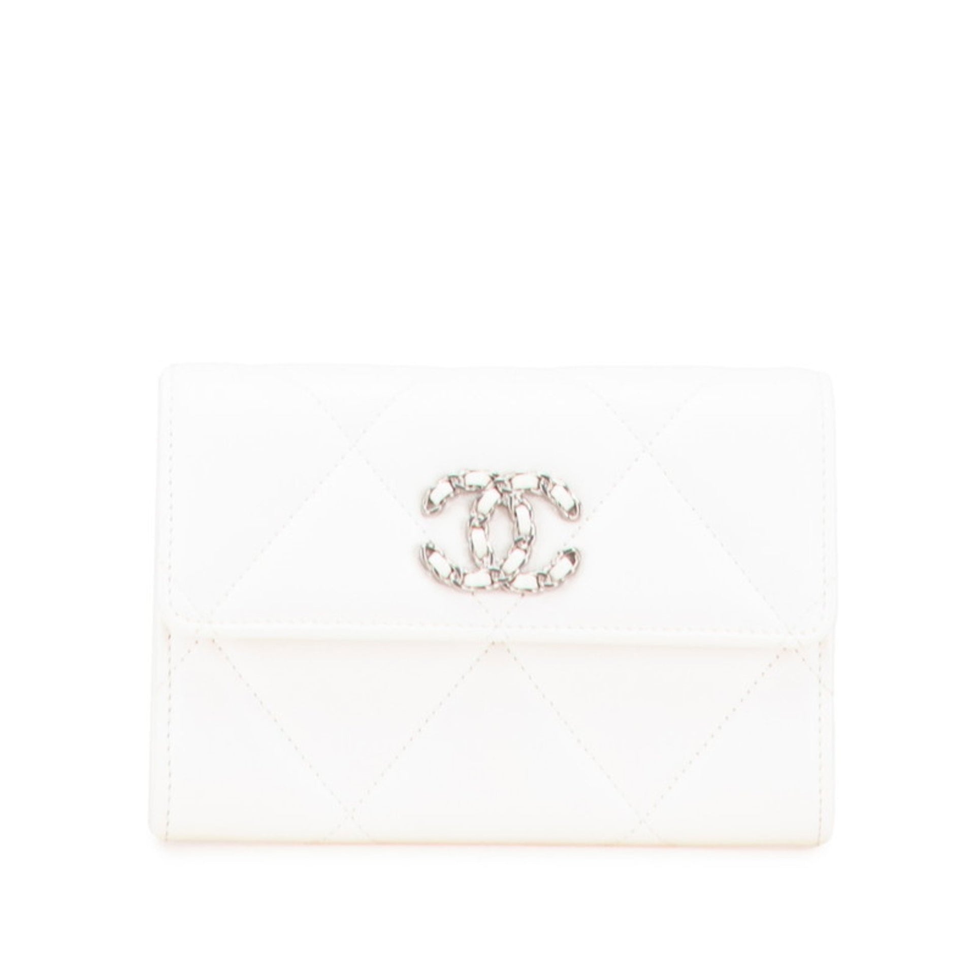 CHANEL 19 Matelasse Tri-fold Wallet in White Lambskin for Women