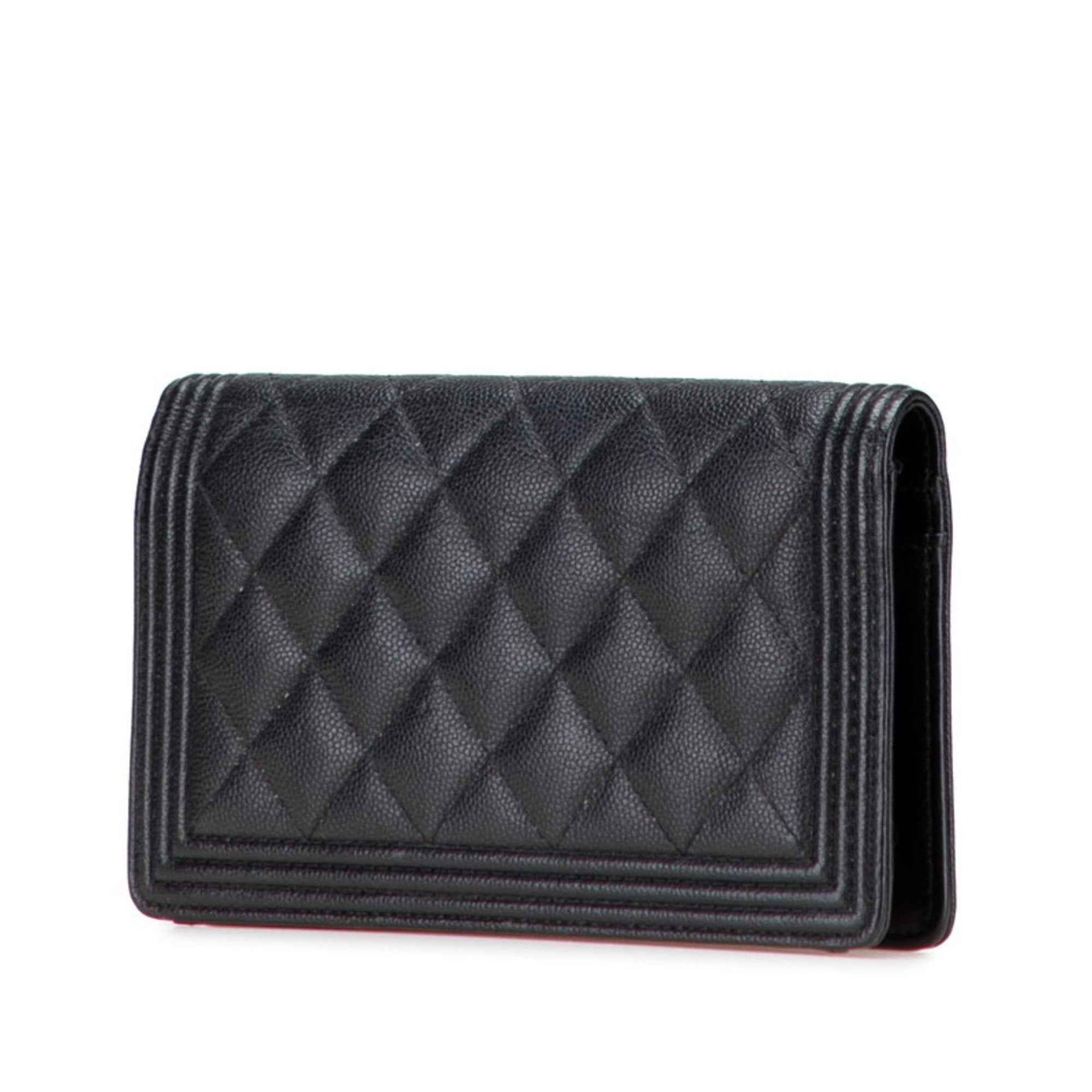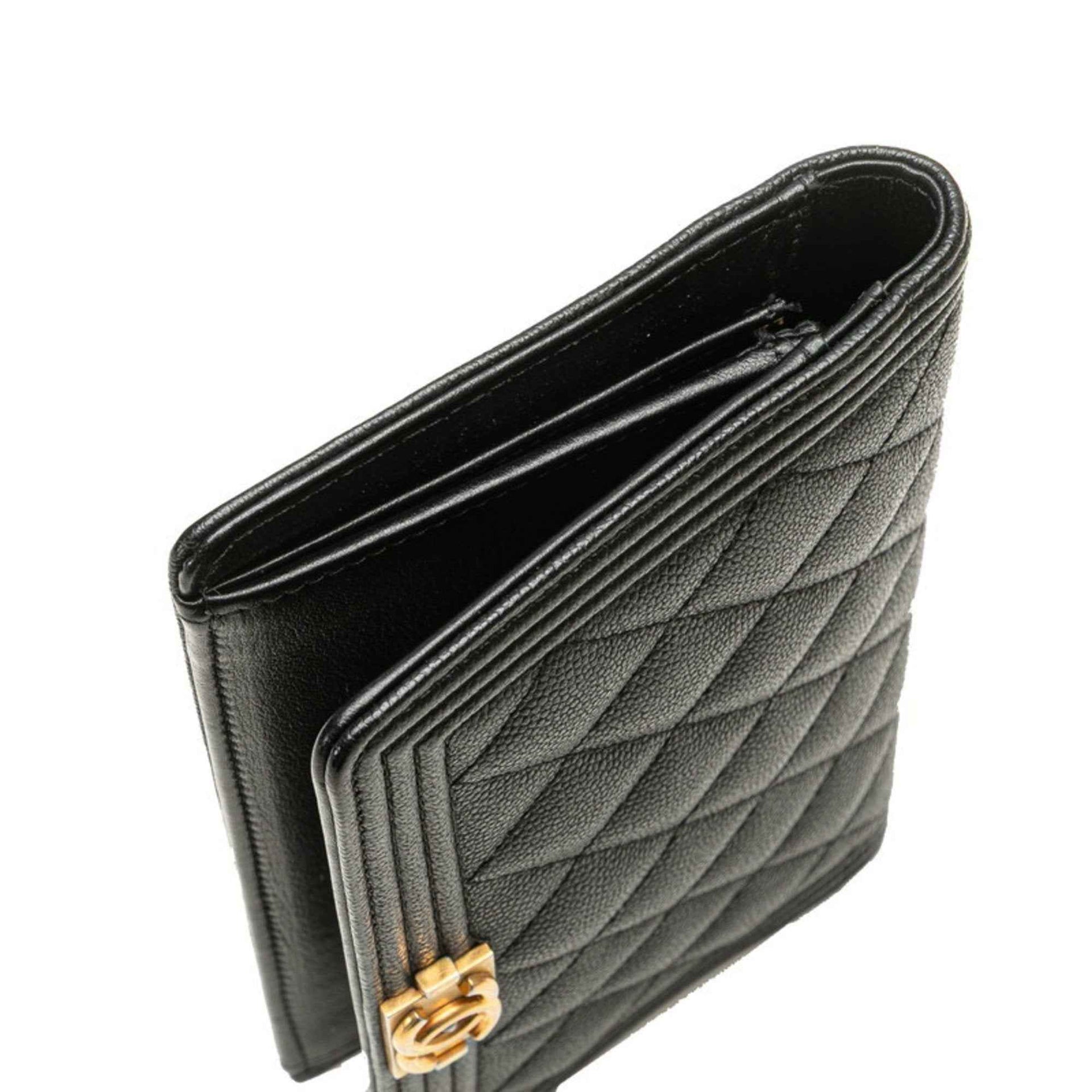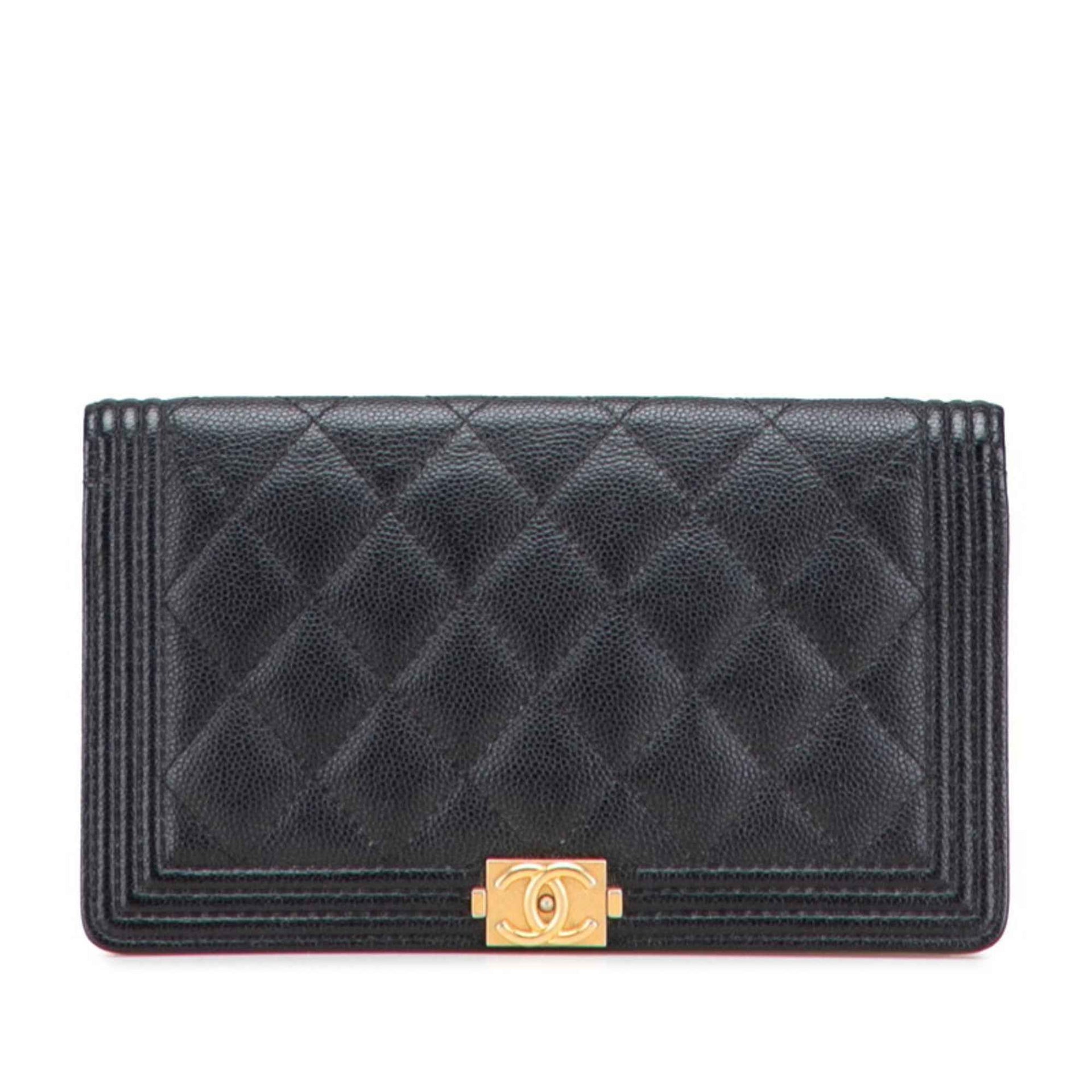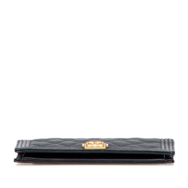 CHANEL Boy Chanel Long Wallet in Black with Antique Gold Hardware and Caviar Leather, Women\'s