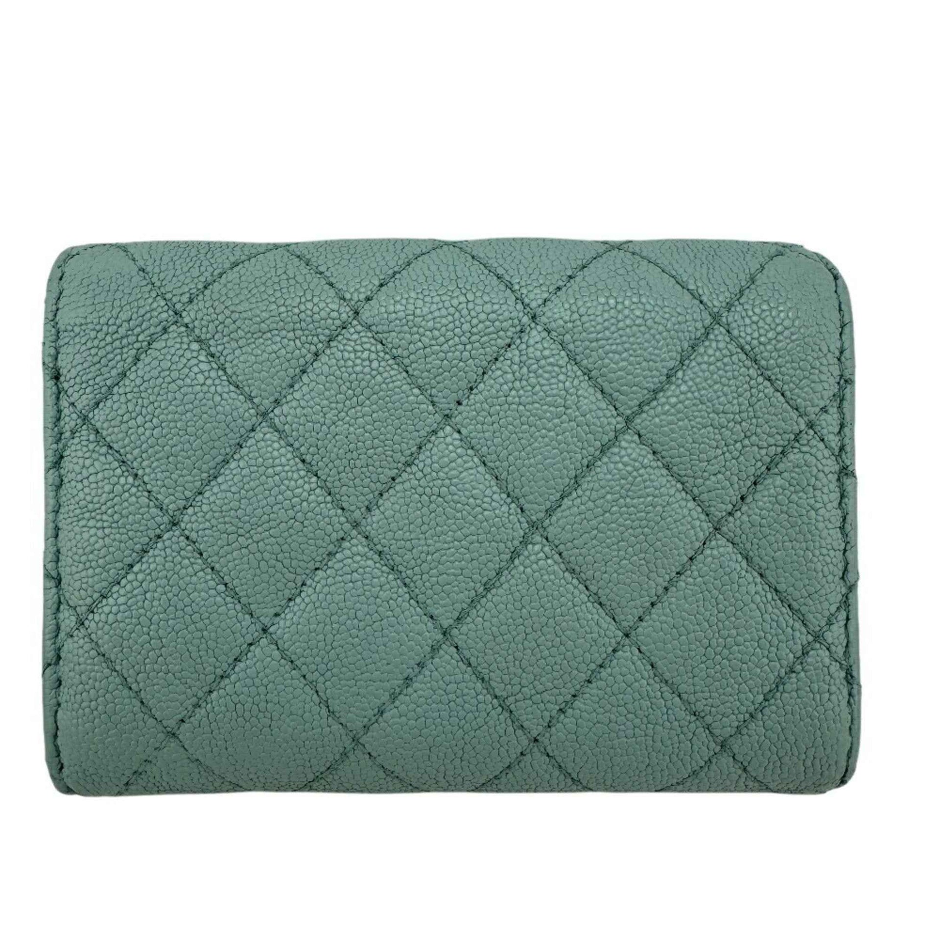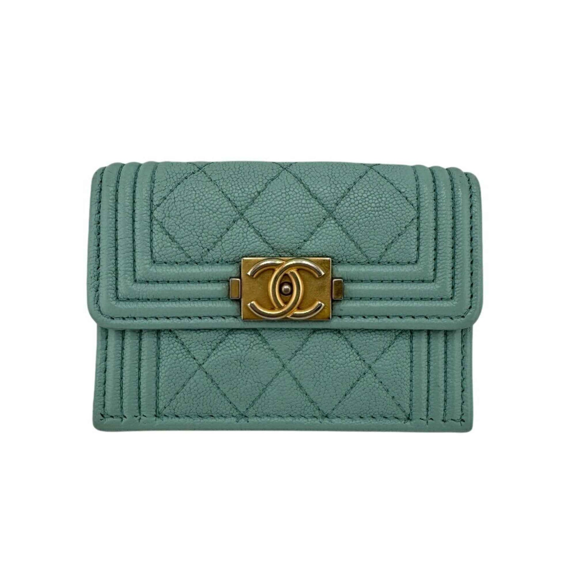 CHANEL Boy Chanel Mint Tri-fold Wallet Blue Women\'s