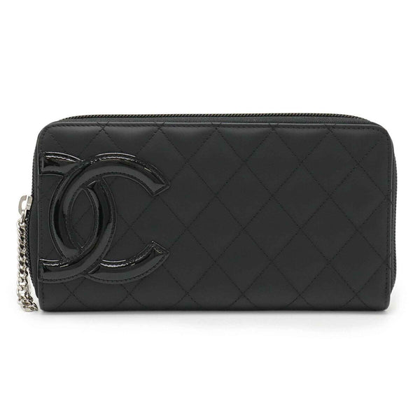 CHANEL Cambon Line Coco Mark Round Long Wallet in Soft Calf Leather, Enamel, Black and Pink, A50078