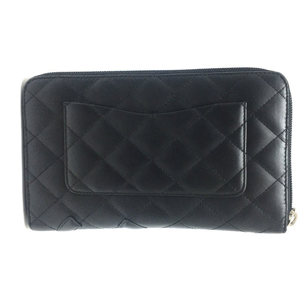 CHANEL Cambon Line Organizer Round Zipper Long Wallet, Calf Leather, Women\'s, Black/Pink, A26710