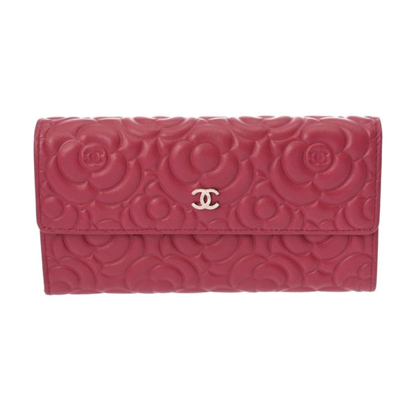 CHANEL Camellia Bifold Wallet, Pink, A82283, Women\'s Calfskin, Like New