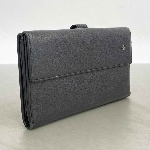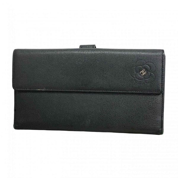 Chanel Camellia Leather Long Wallet Black Women\'s