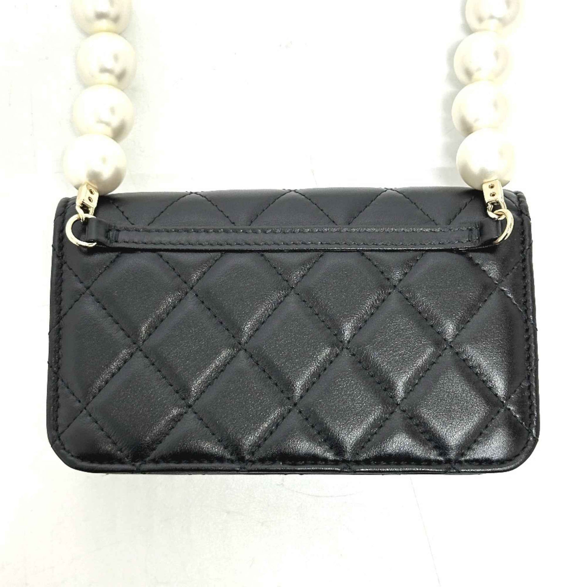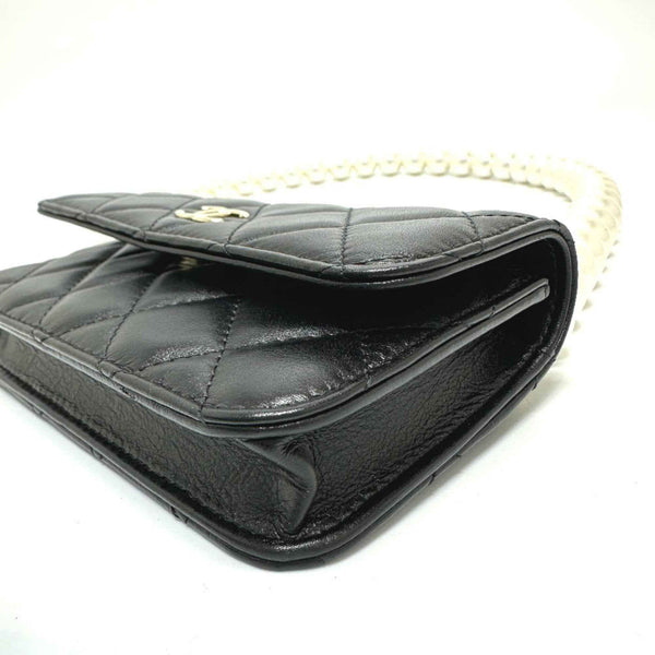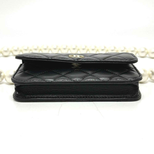 CHANEL CC Coco Mark Pearl Shoulder Chain Wallet Long Bag Lambskin Women\'s Black Like New