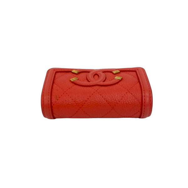 CHANEL CC Figurine Compact Wallet, Caviar Skin, Tri-fold Red, 320-3, No. 27