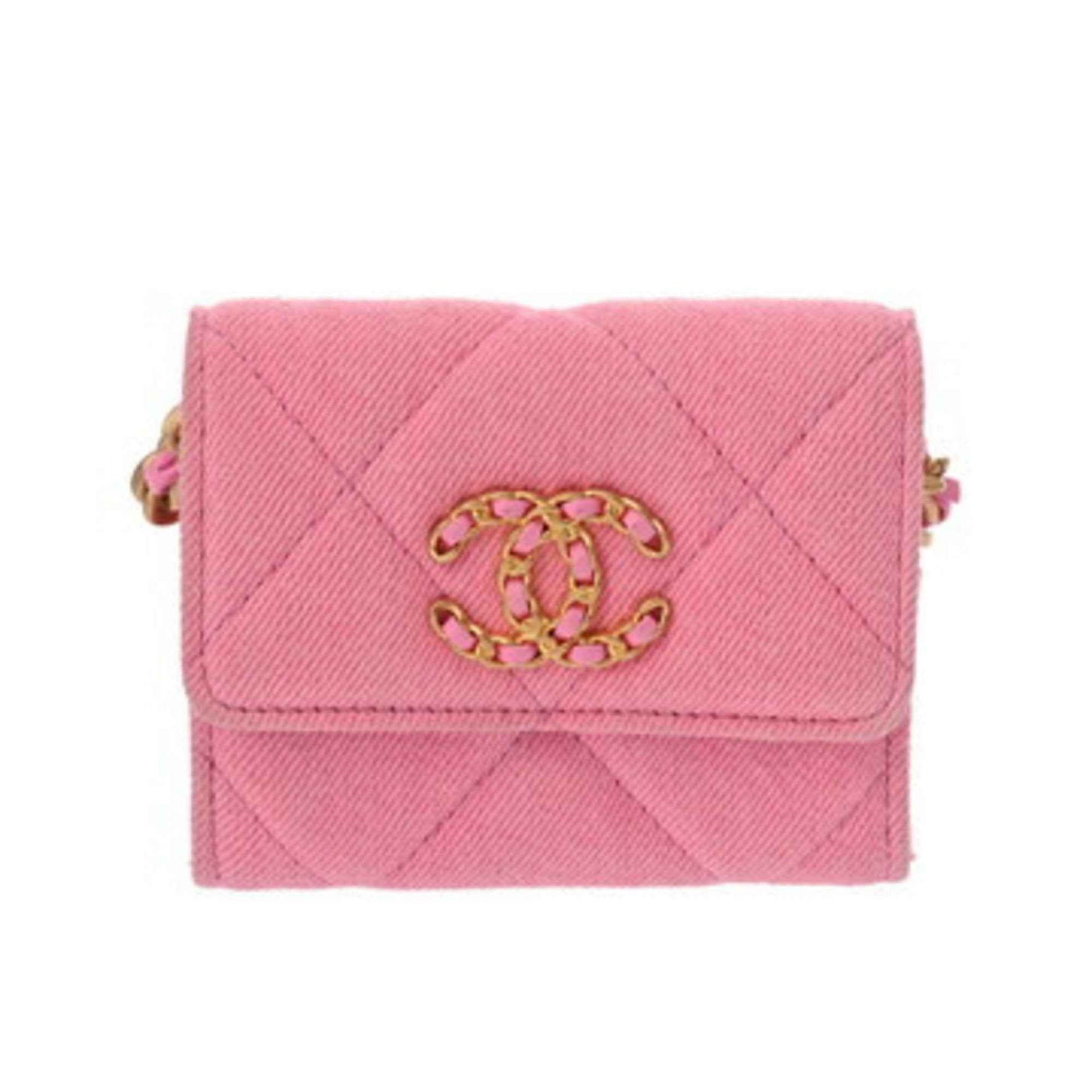 CHANEL Chanel 19 Flap Coin Purse with Chain Shoulder Strap, Pink, AP1787, Women\'s Canvas Case