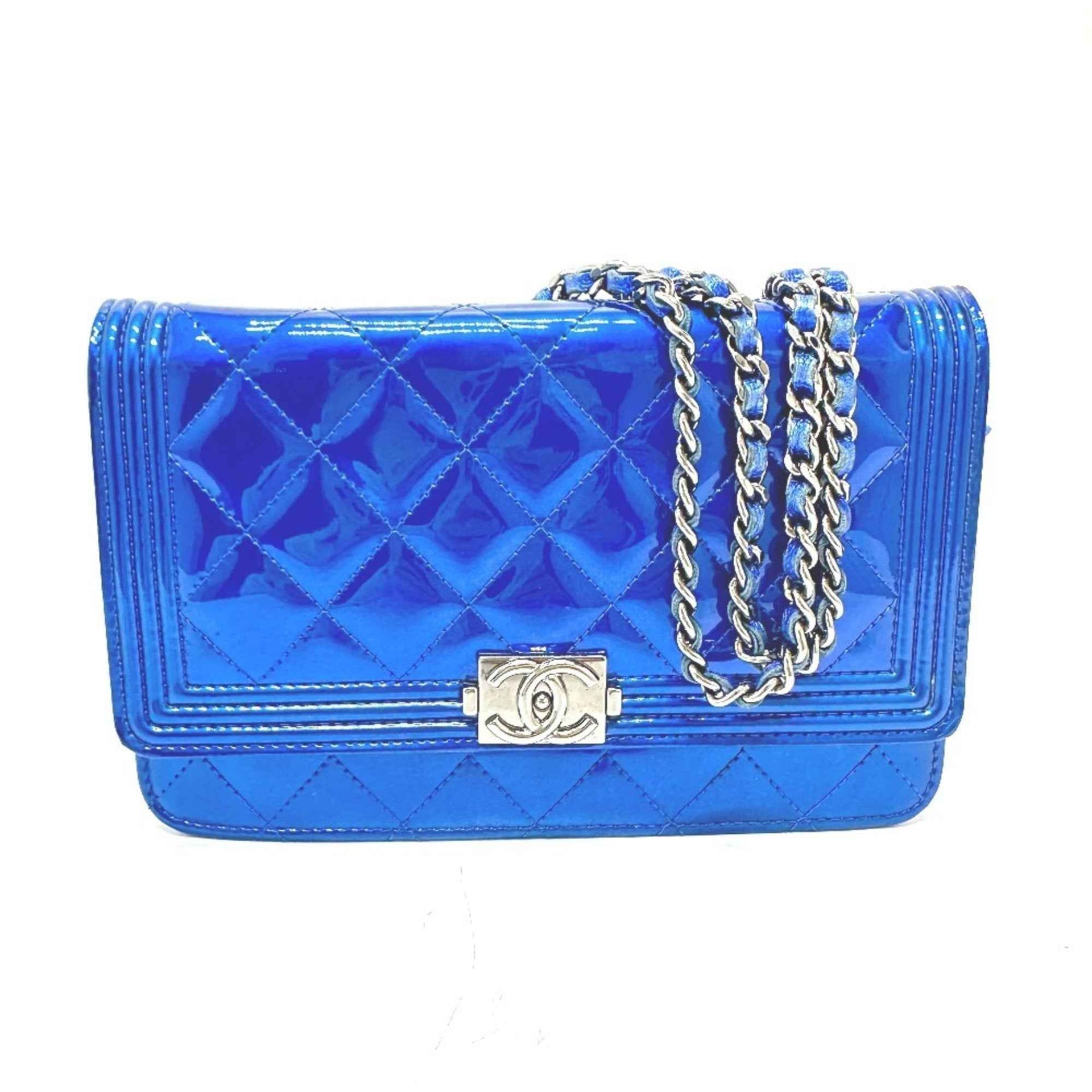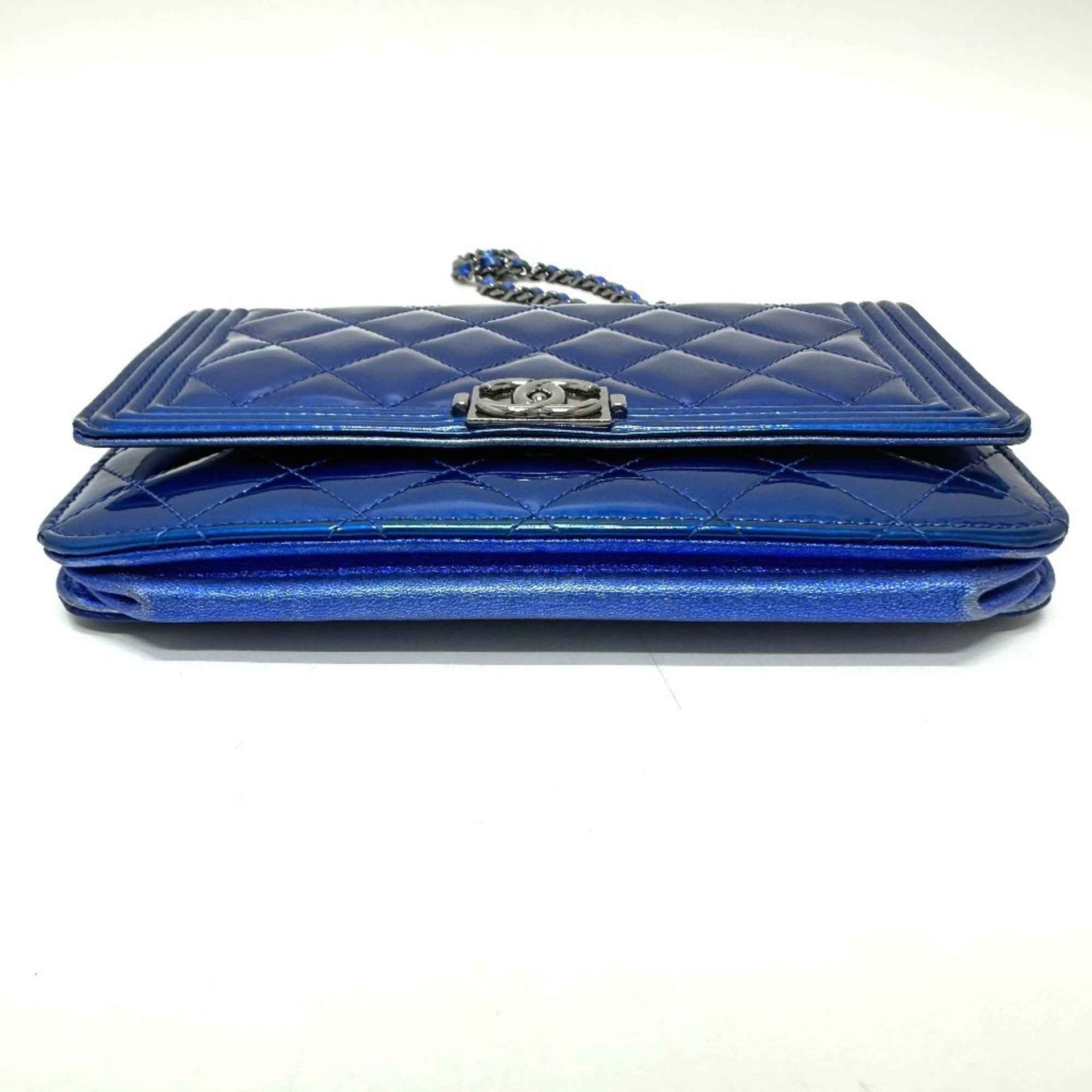CHANEL Chanel long wallet chain bag Boy CC Coco Mark shoulder in patent leather, gunmetal blue