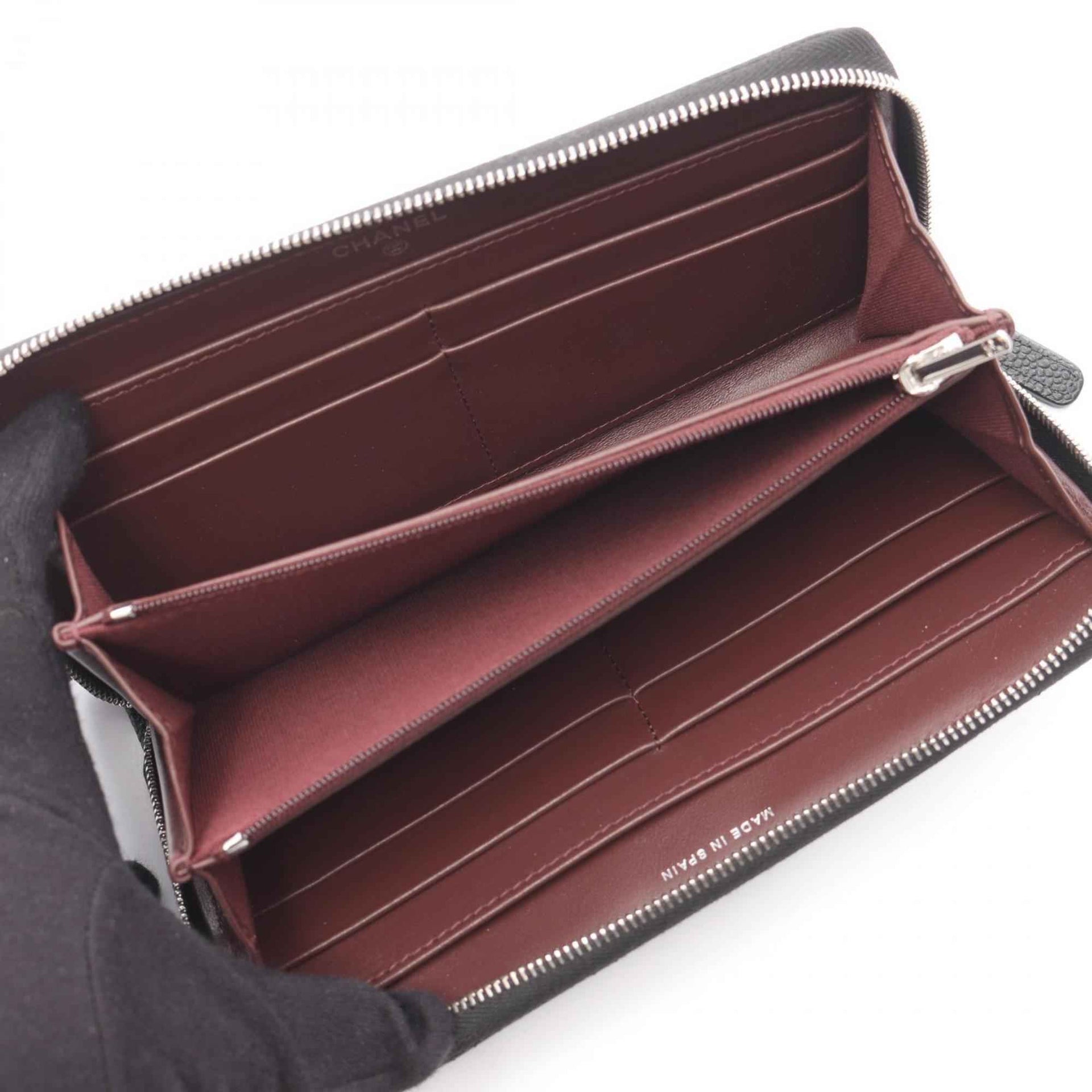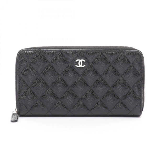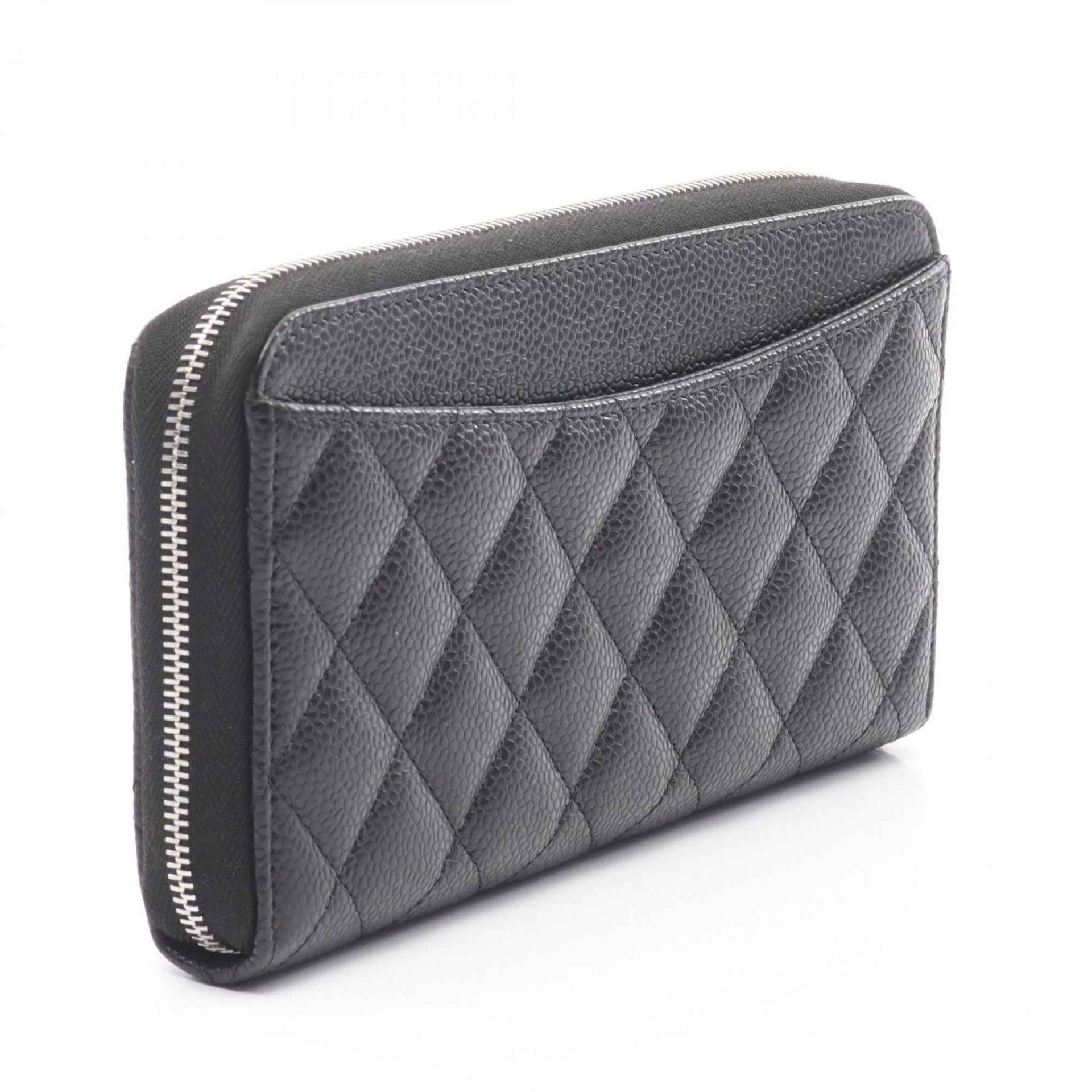 CHANEL Classic Long Zip Wallet, Matelasse, Round Grained Calfskin Leather, Women\'s, Black, AP0242