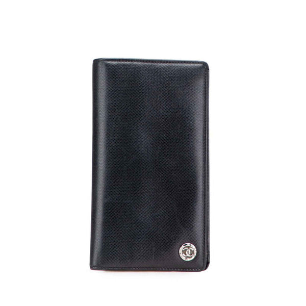 Chanel Coco Button Long Wallet Black Leather Women\'s CHANEL