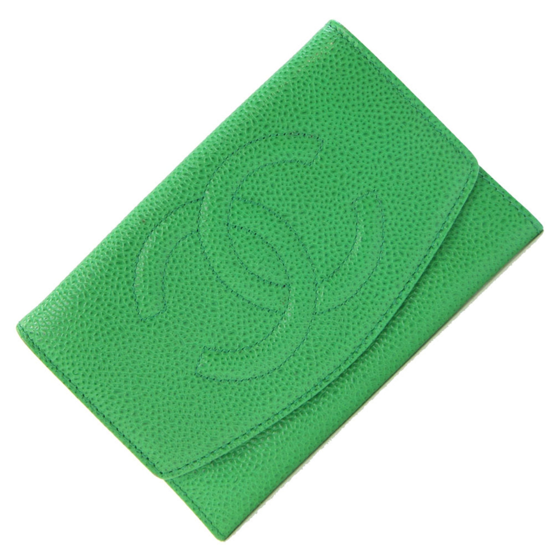 Chanel Coco Mark Green Caviar Leather Bifold Wallet, Old Style, Women\'s, CHANEL