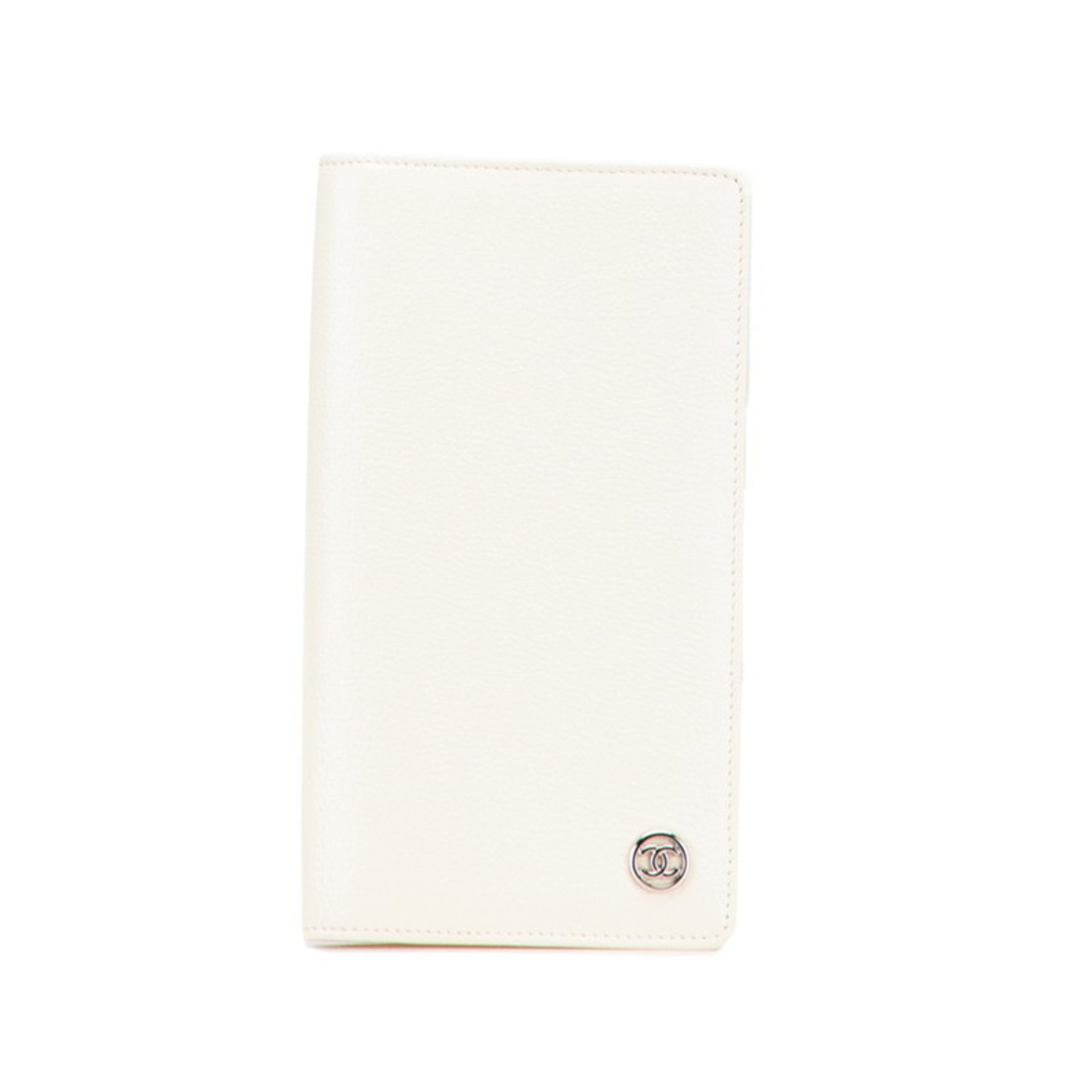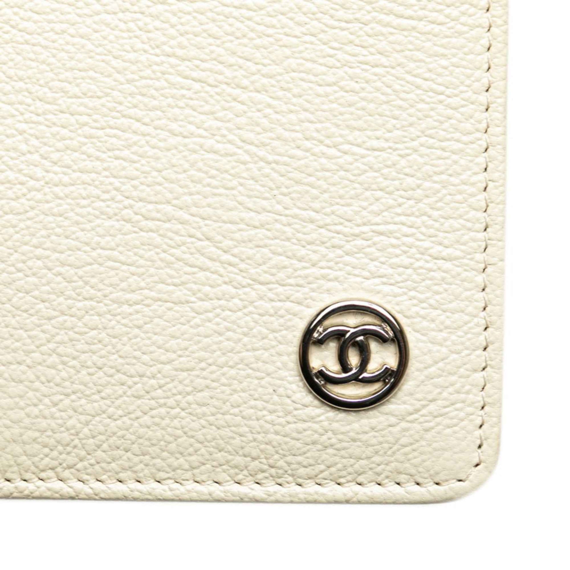 CHANEL Coco Mark Long Wallet White Leather Women\'s