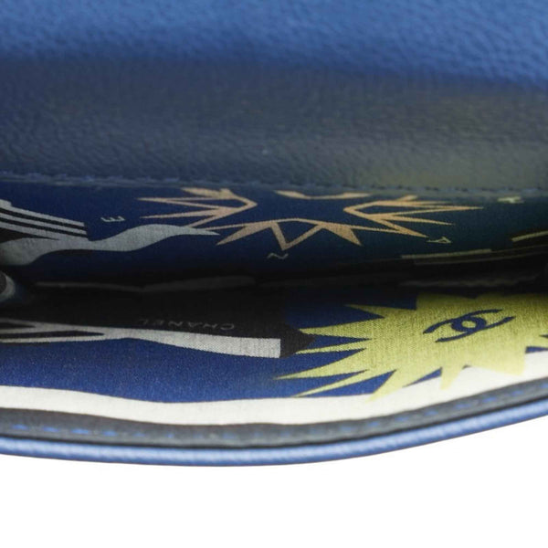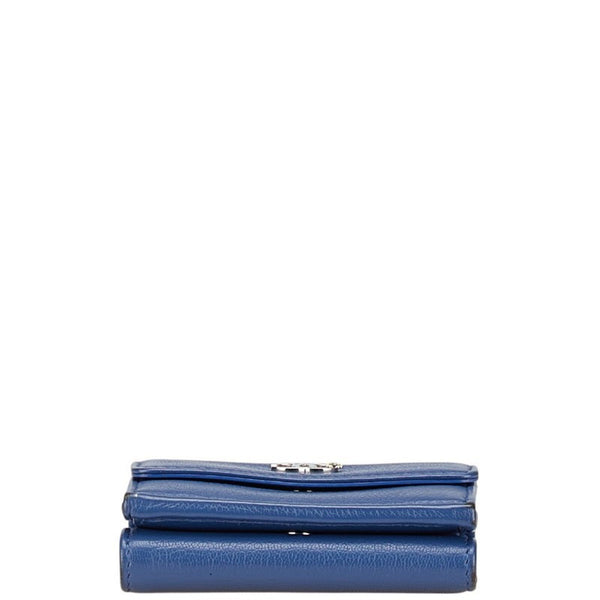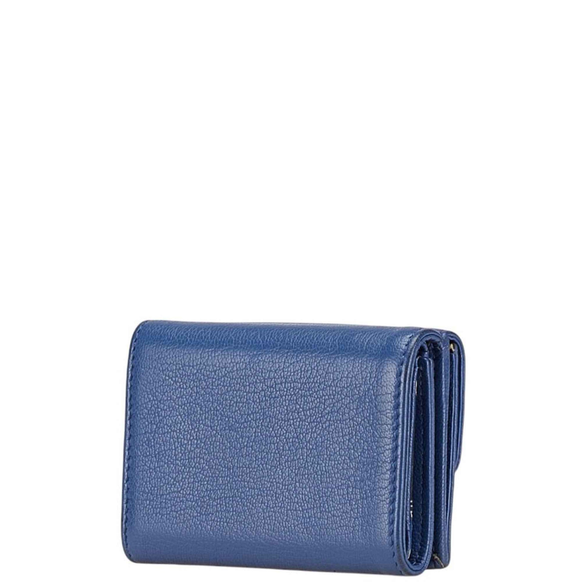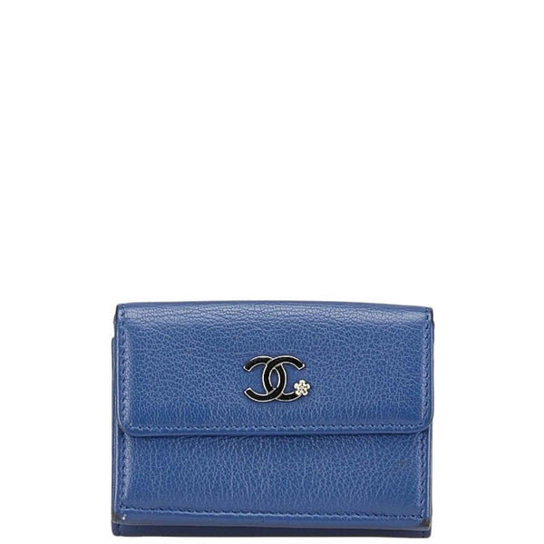 Chanel Coco Mark Lucky Flower Tri-fold Wallet, Small Compact Blue Leather, Women\'s, CHANEL