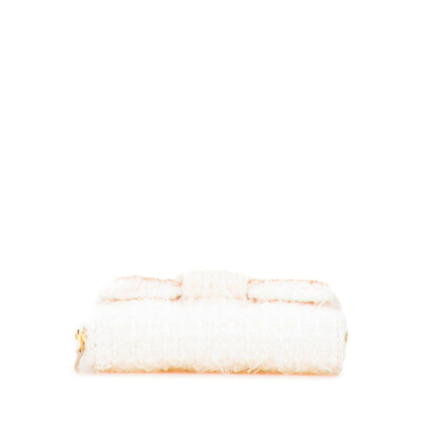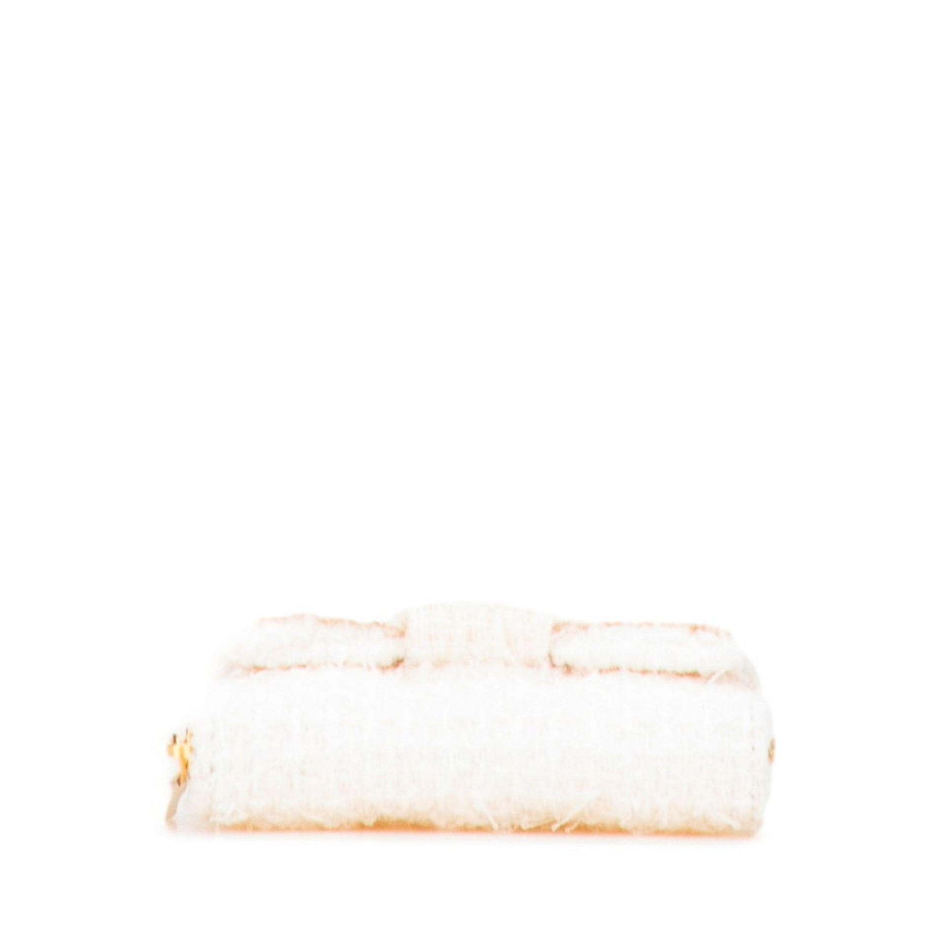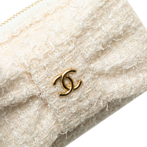 Chanel Coco Mark Ribbon Mini Chain Wallet, Wallet/Coin Case, White, Gold, Tweed, Leather, Women\'s, CHANEL