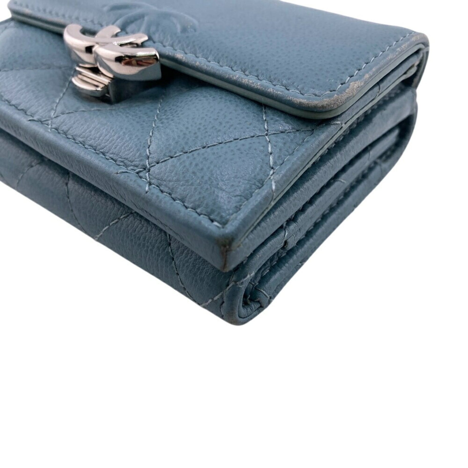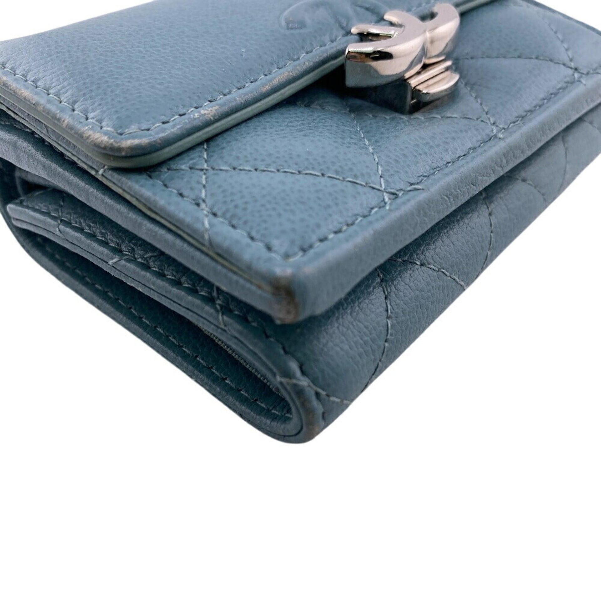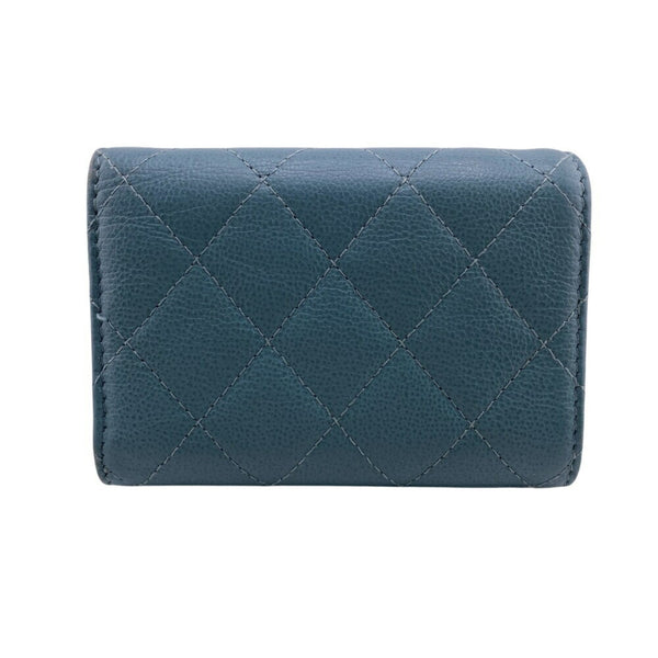 CHANEL Coco Mark Tri-fold Wallet Blue Women\'s