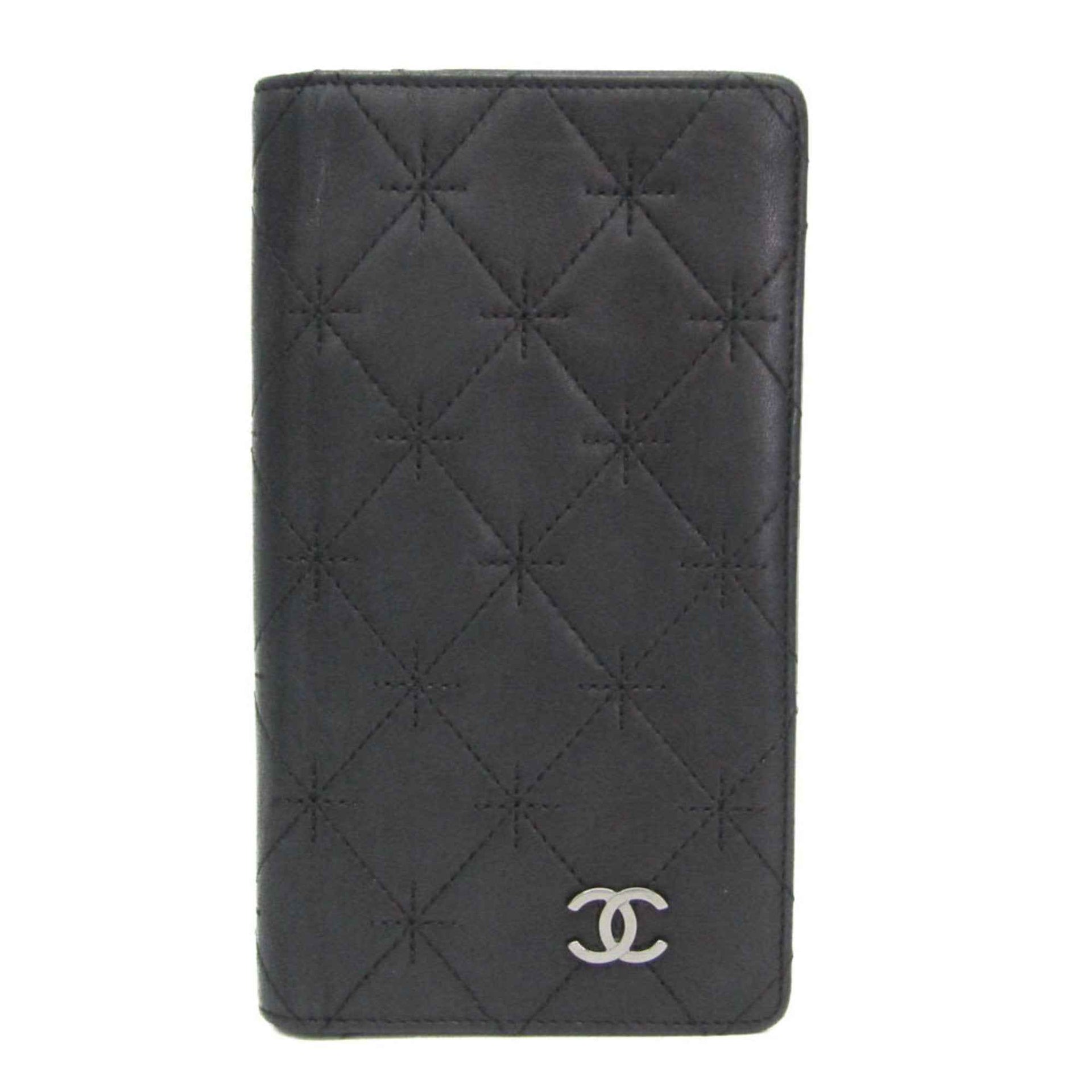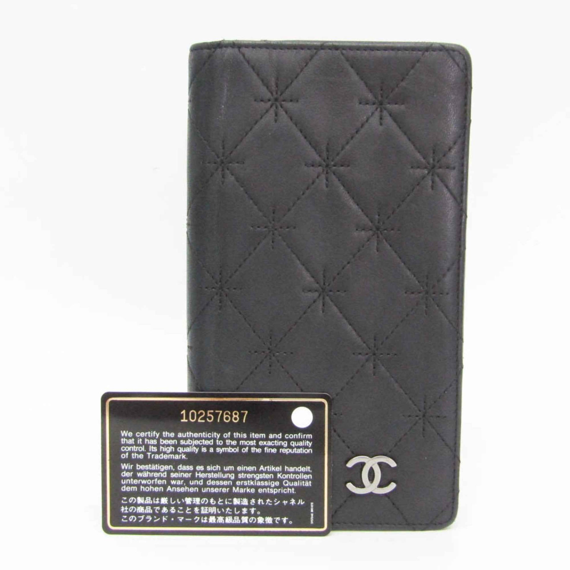 Chanel Coco Mark Women\'s Lambskin Long Wallet (bi-fold) Black
