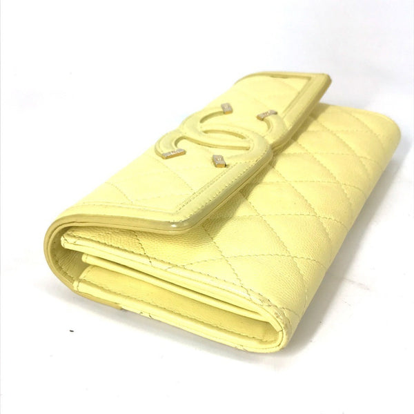 CHANEL Filigree CC Coco Mark Bifold Long Wallet in Caviar Leather, Yellow