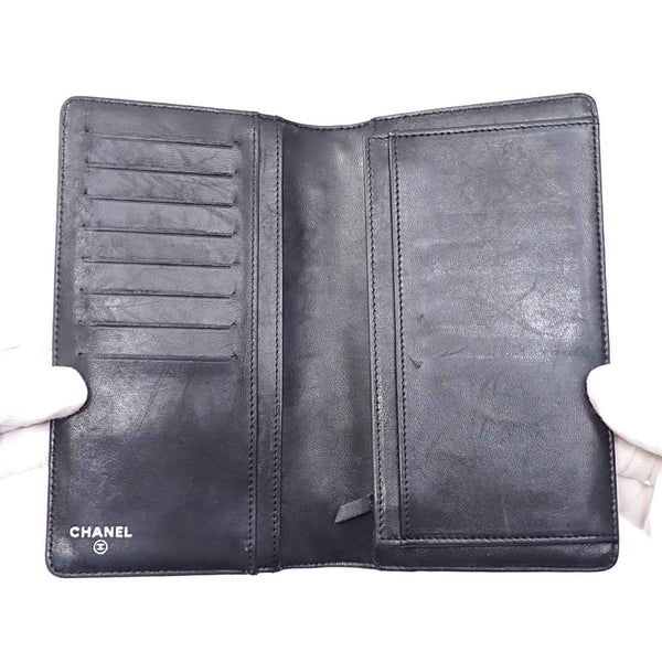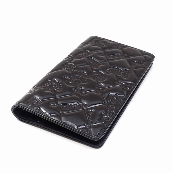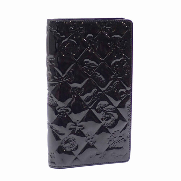Chanel Icon Line Bifold Long Wallet, Women\'s, Black Patent Leather, A37151