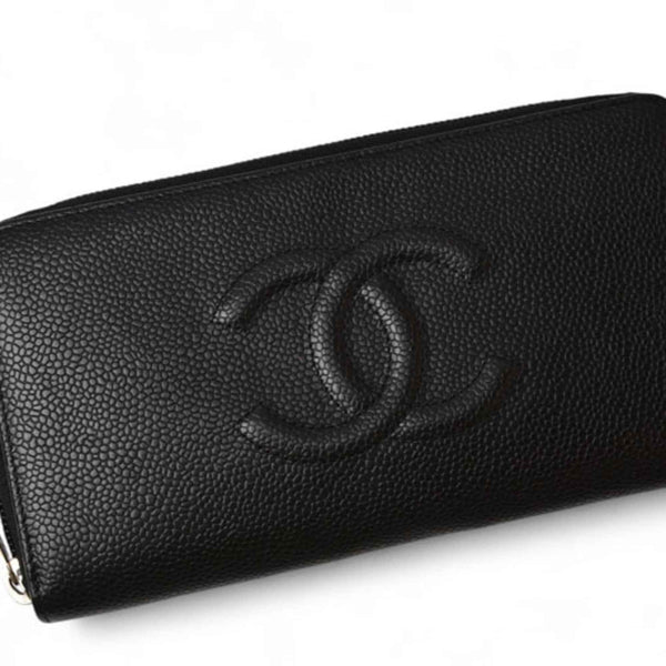 CHANEL Long Wallet, Round, Caviar Leather, Silver, A50071