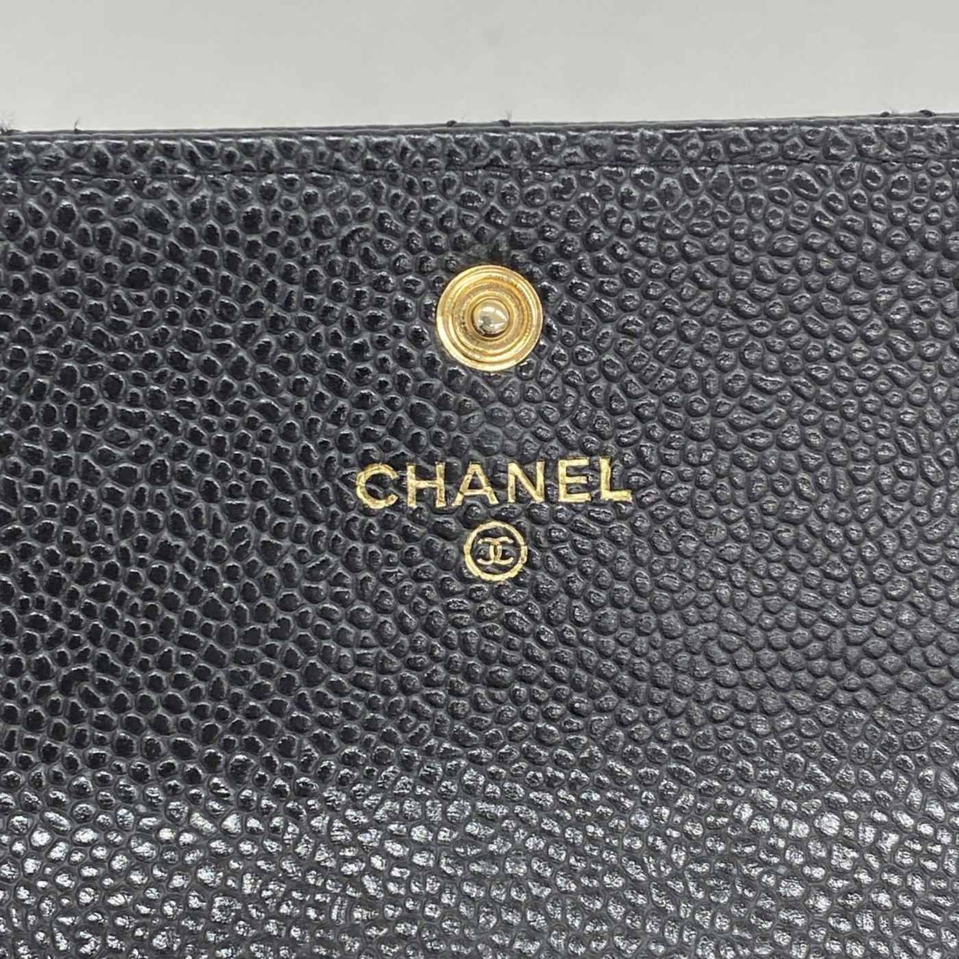 Chanel Matelasse Caviar Leather Long Wallet, Black, Women\'s
