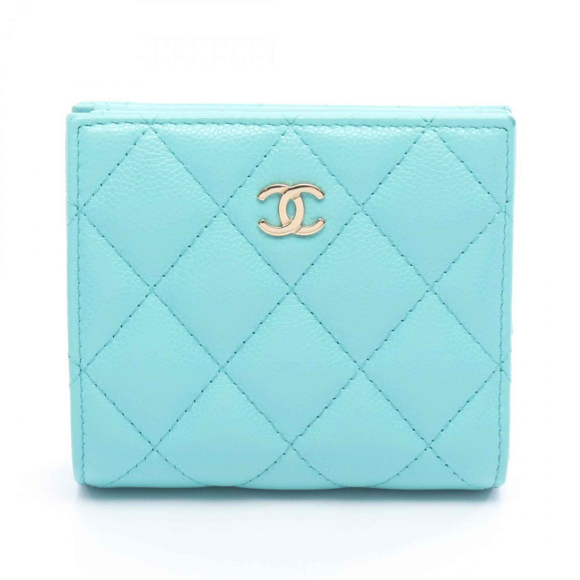CHANEL Matelasse Classic Small Wallet, Bi-fold Grained Calfskin Leather, Women\'s, Green, AP3178