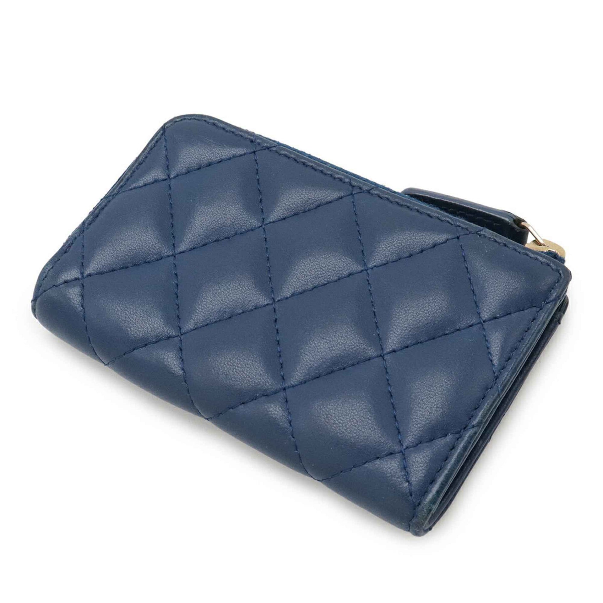 CHANEL Matelasse Coco Mark Coin Case/Purse with Key Ring, L-Shaped, Lambskin, Blue, AP0221